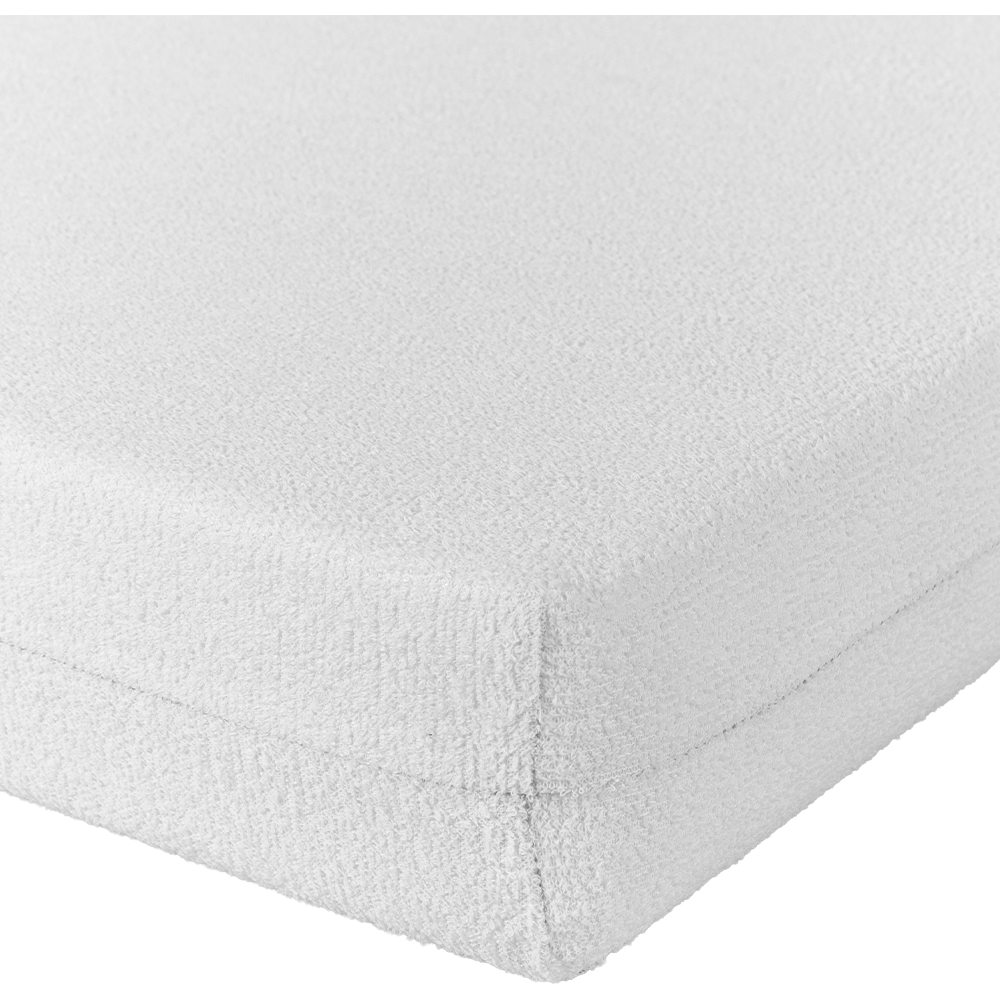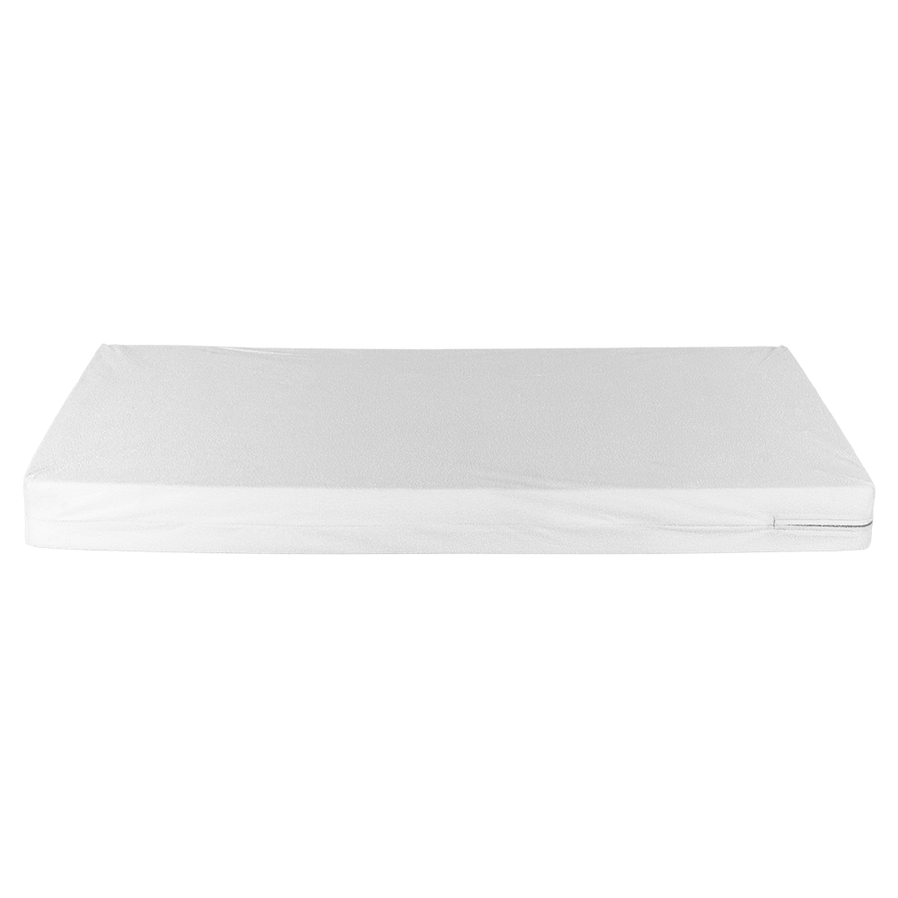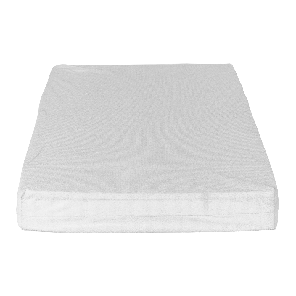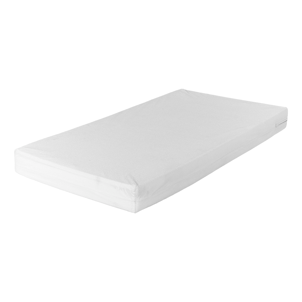 Colchón Cuna Impermeable color blanco, fabricado en espuma y tela impermeable.