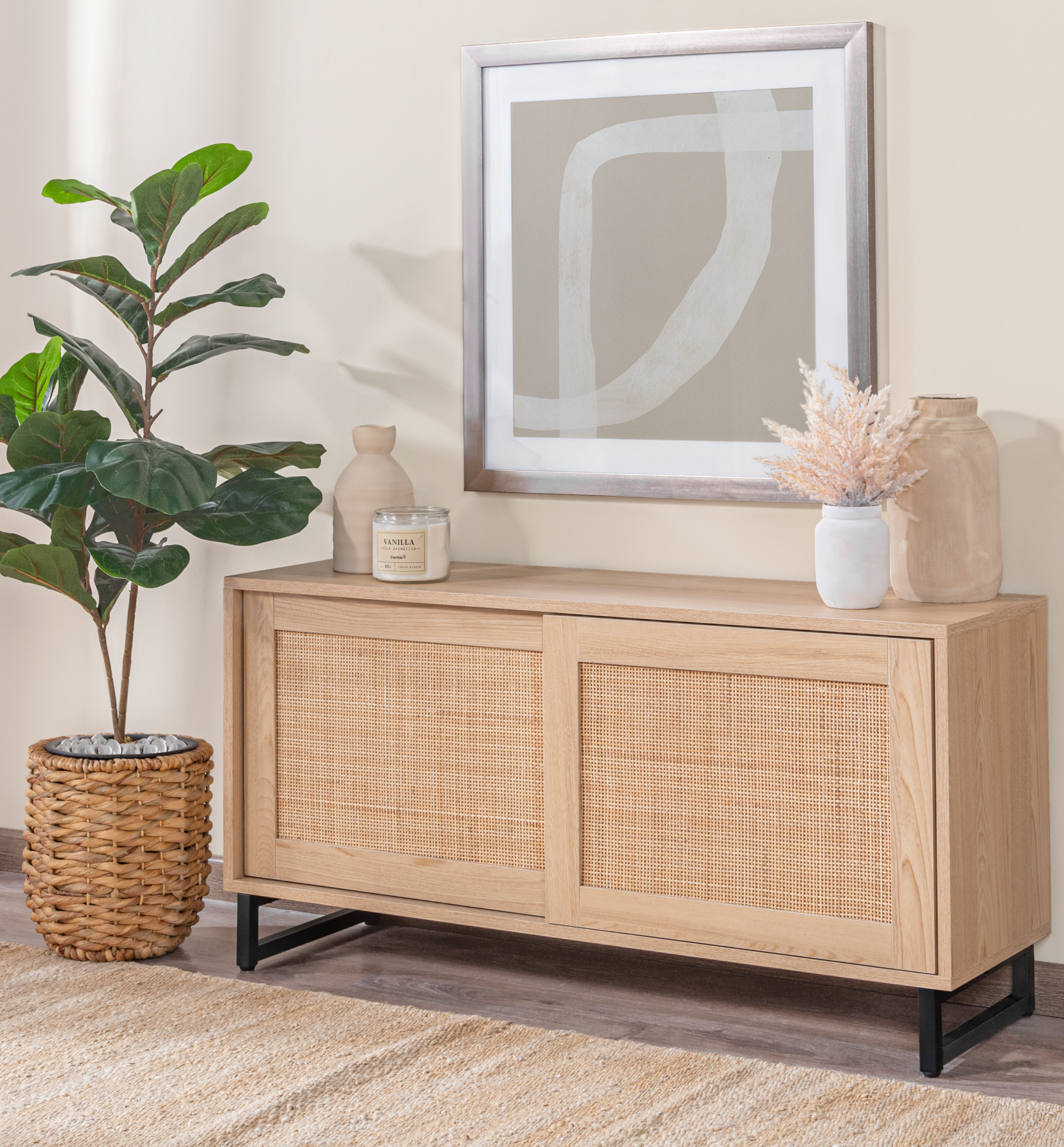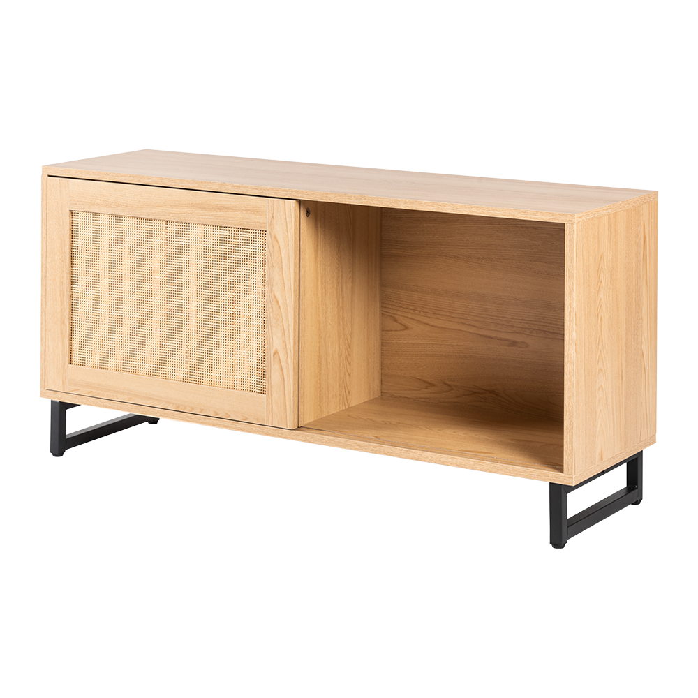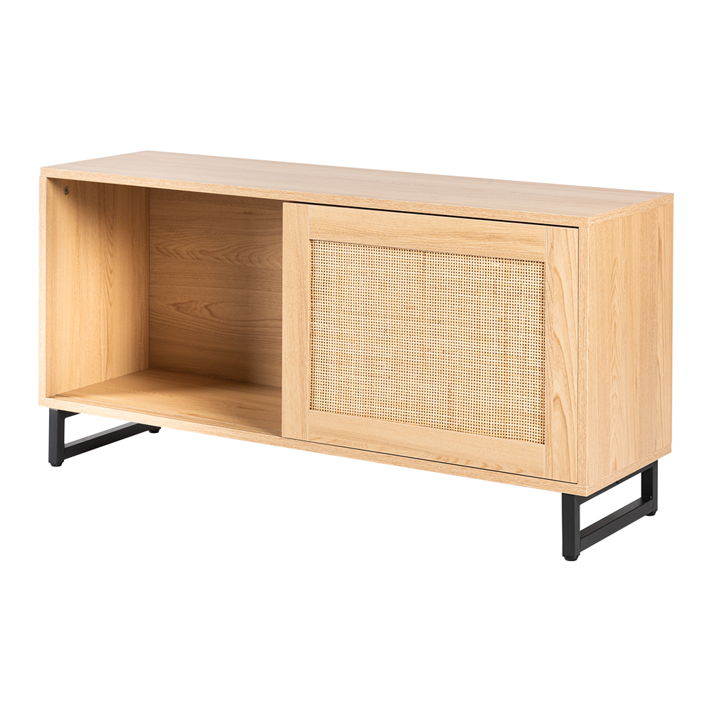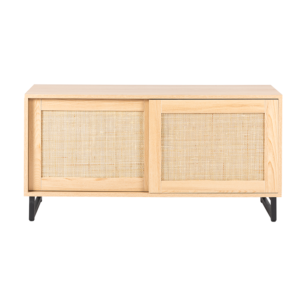 Cómoda Rimini diseñado en acabado natural de 100 cm de largo x 30 cm de ancho x 50 cm de alto, fabricado en melamina y pvc.