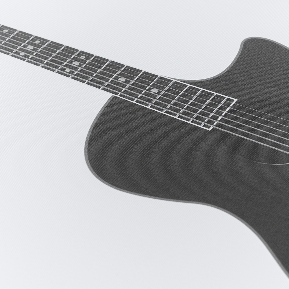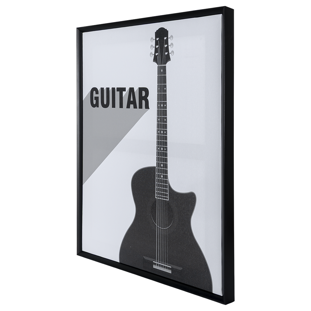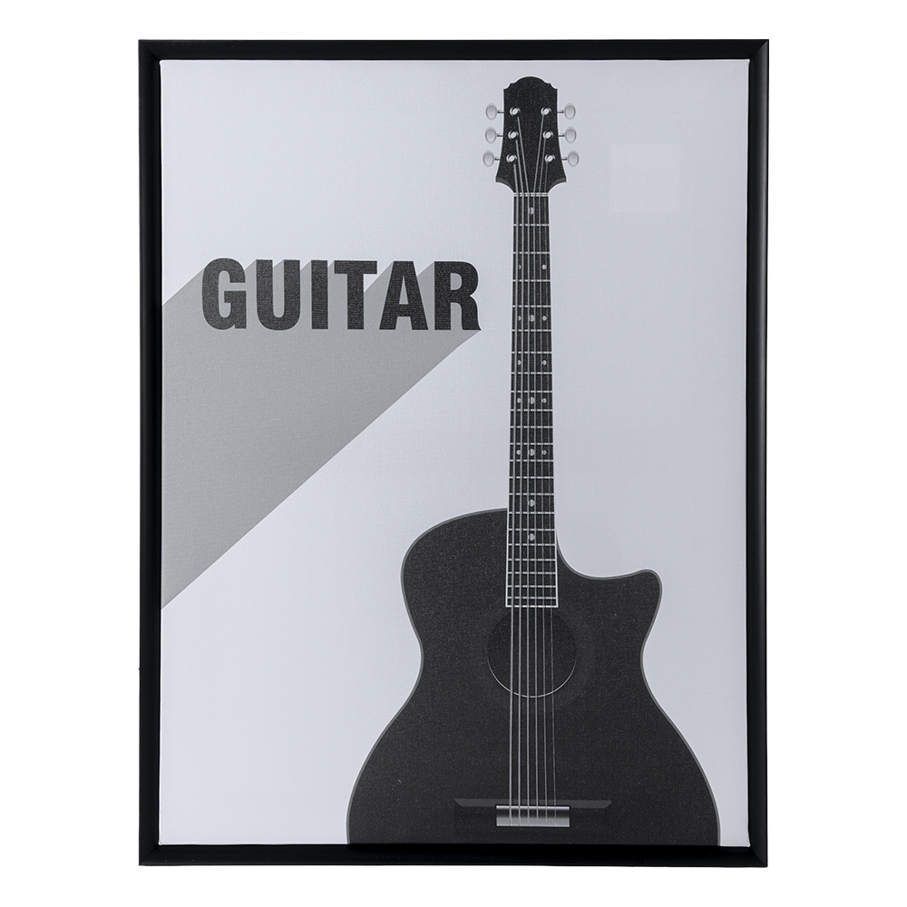 Cuadro Guitar blanco con negro de 45 cm de largo x 60 cm de alto x 3 cm de ancho, fabricado en Mdf / Poliestireno.