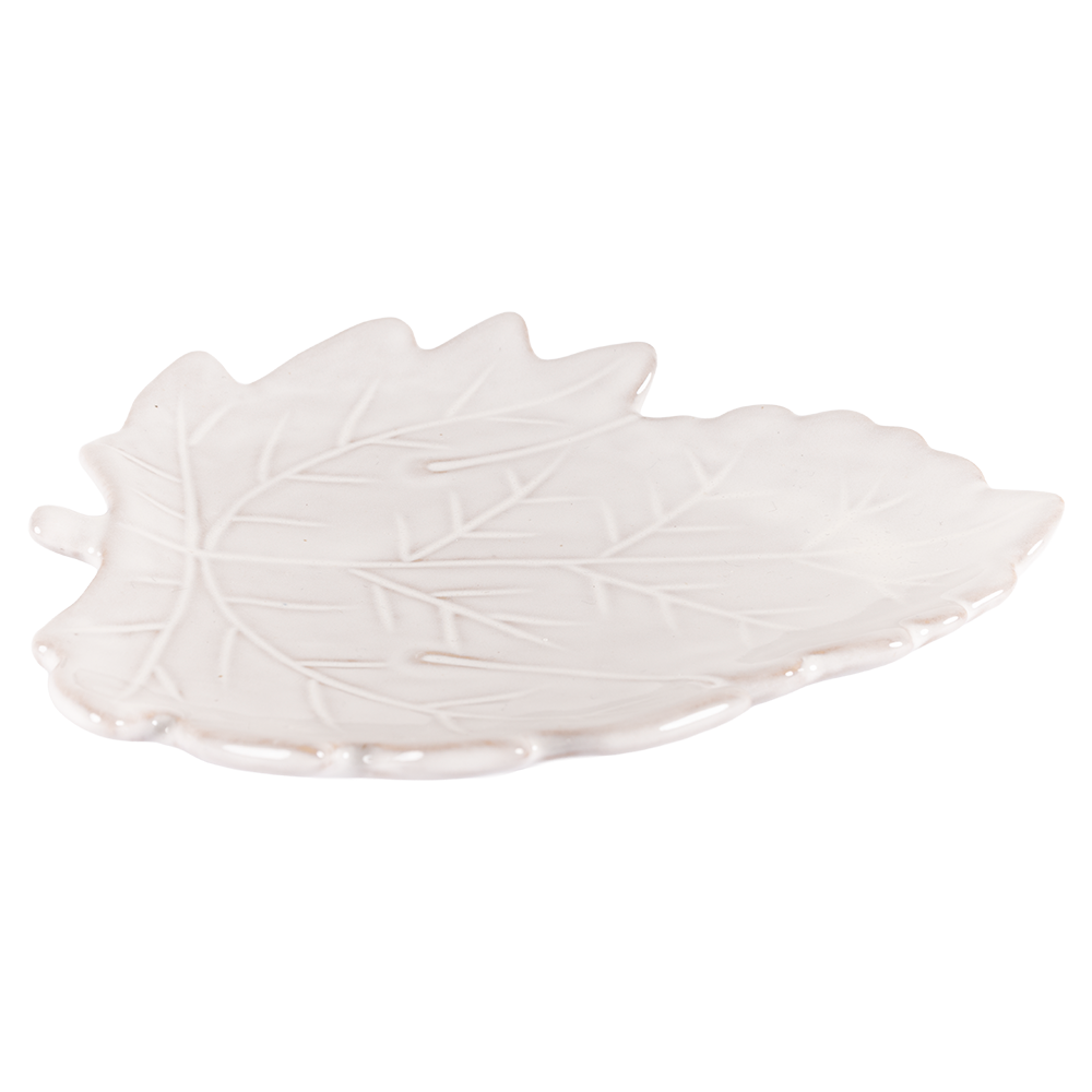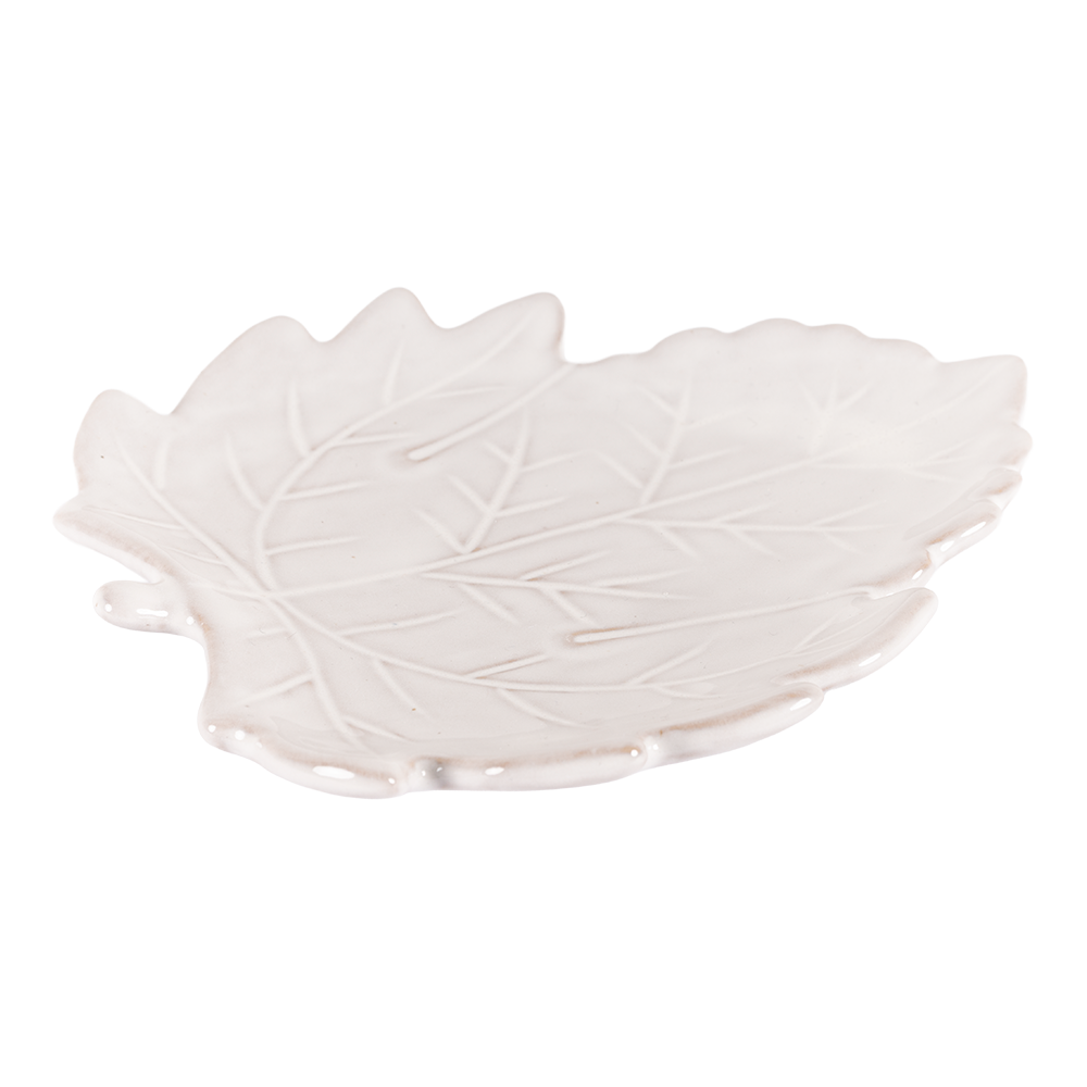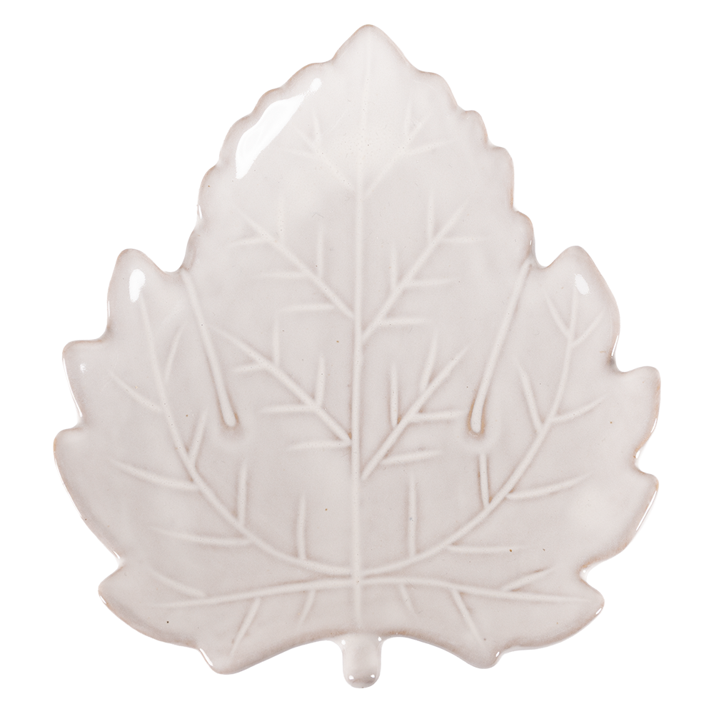 Plato Hoja Aspen color beige, fabricado en cerámica.