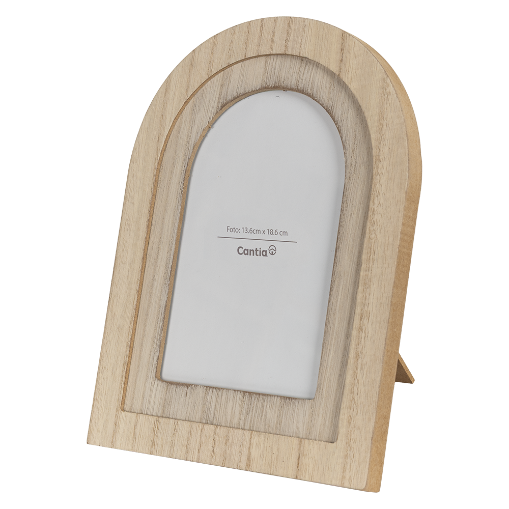 Portarretrato Sandi en color beige de 16.2 cm de largo x 1.2 cm de ancho x 21.2 cm de alto, fabricado en MDF y vidrio.