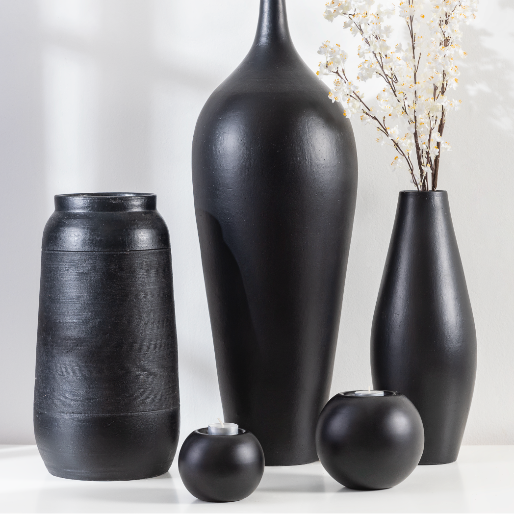 Florero Panal en color negro de 20 cm de largo x 20 cm de ancho x 40 cm de alto, fabricado en barro.