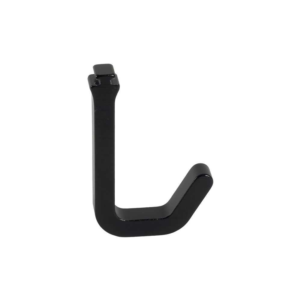 Set de ganchos con 3 piezas color negro de 6 cm de largo x 3 cm de ancho, fabricado en aluminio.