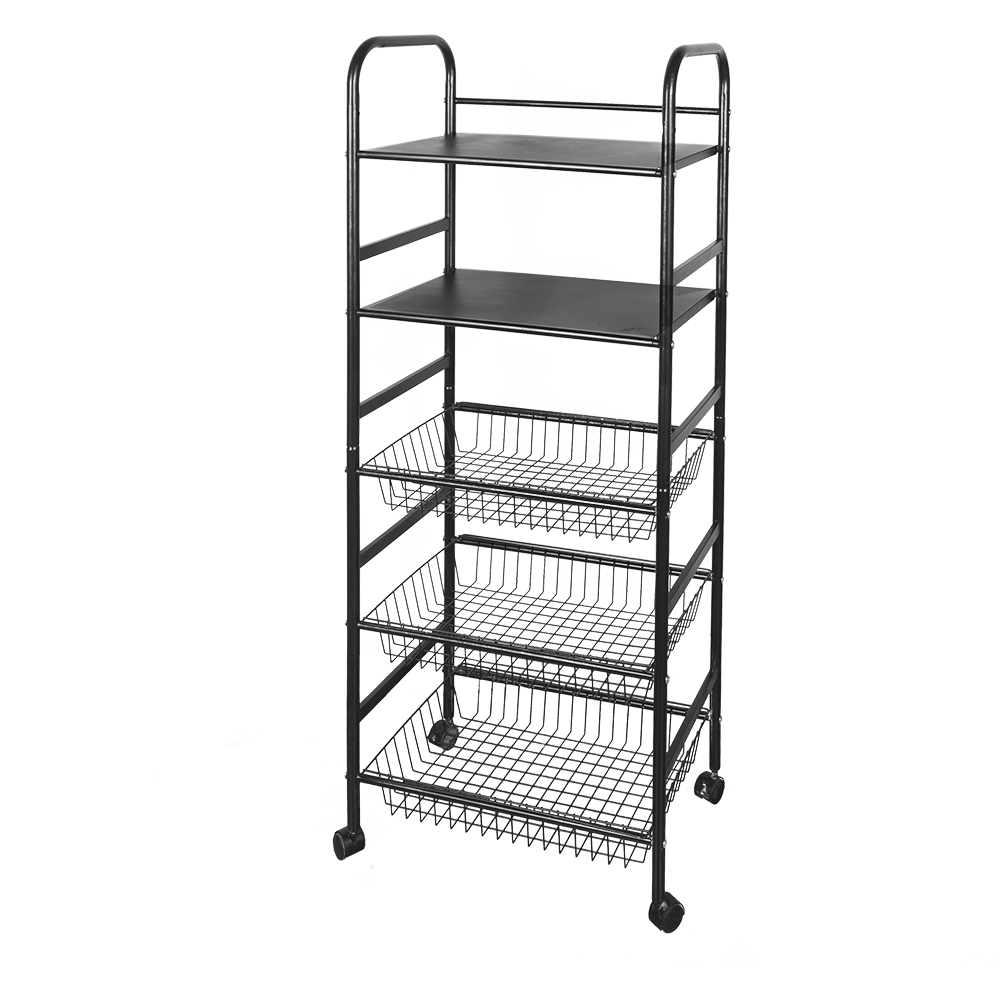 Carrito Organizador Campazas acabado negro fabricado en metal.