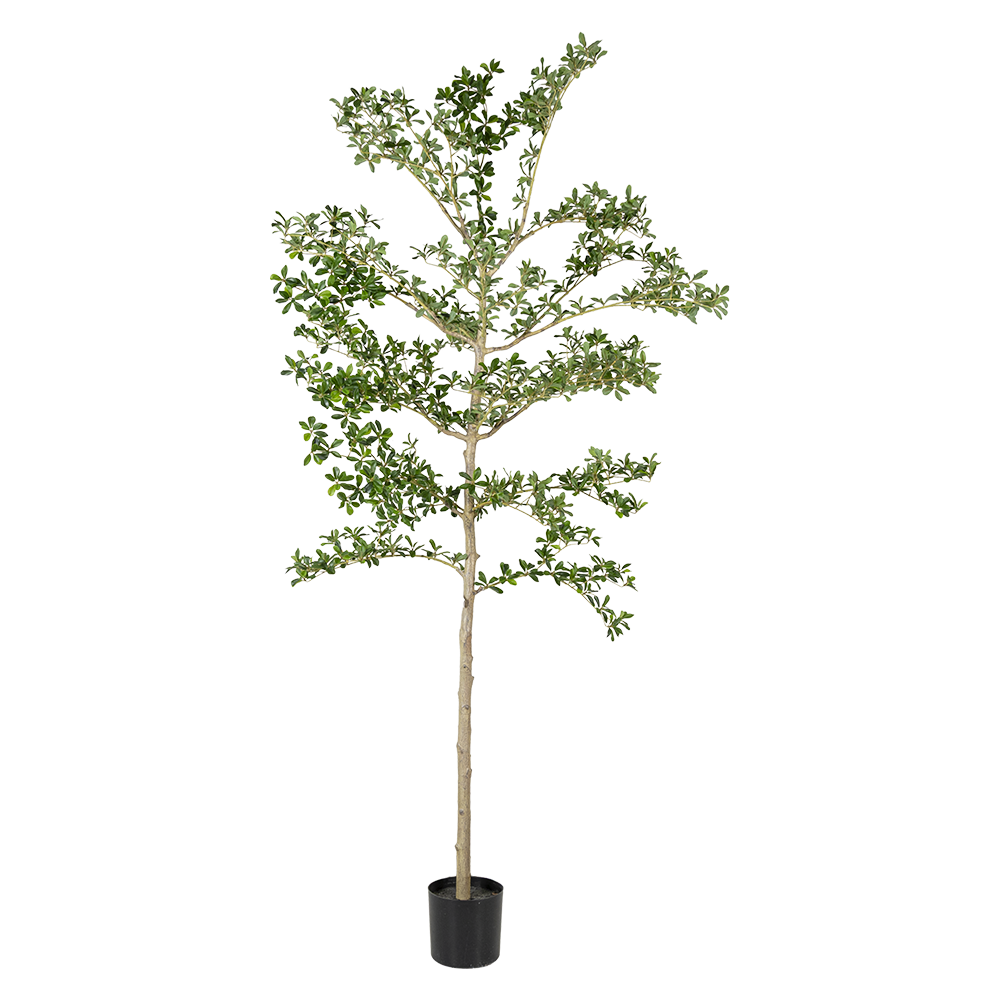Planta Artificial Nandina en color verde de 210 cm de alto, fabricado en 54% poliuretano, PEVA, 34% PE, 10% alambre de hierro y 2% cemento.