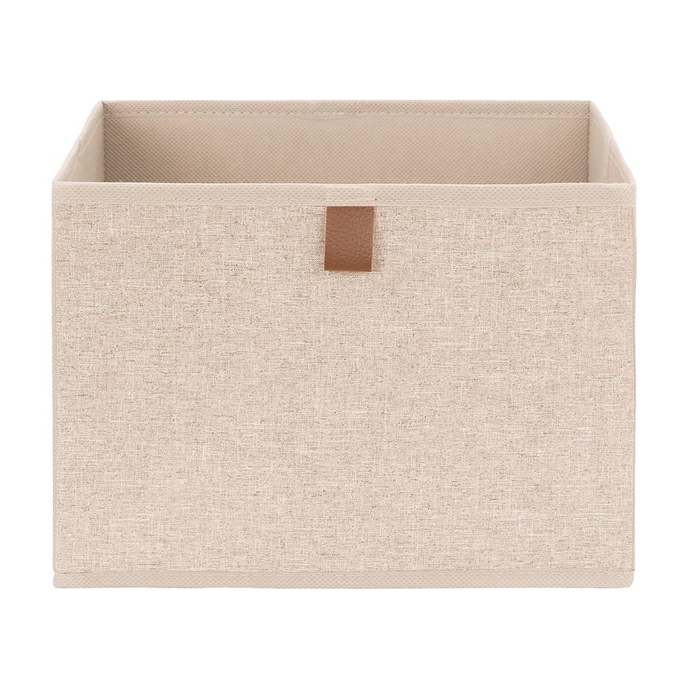Caja organizadora Nuk de 28 cm de largo x 27 cm de ancho x 20 cm de alto, disponible en color beige.