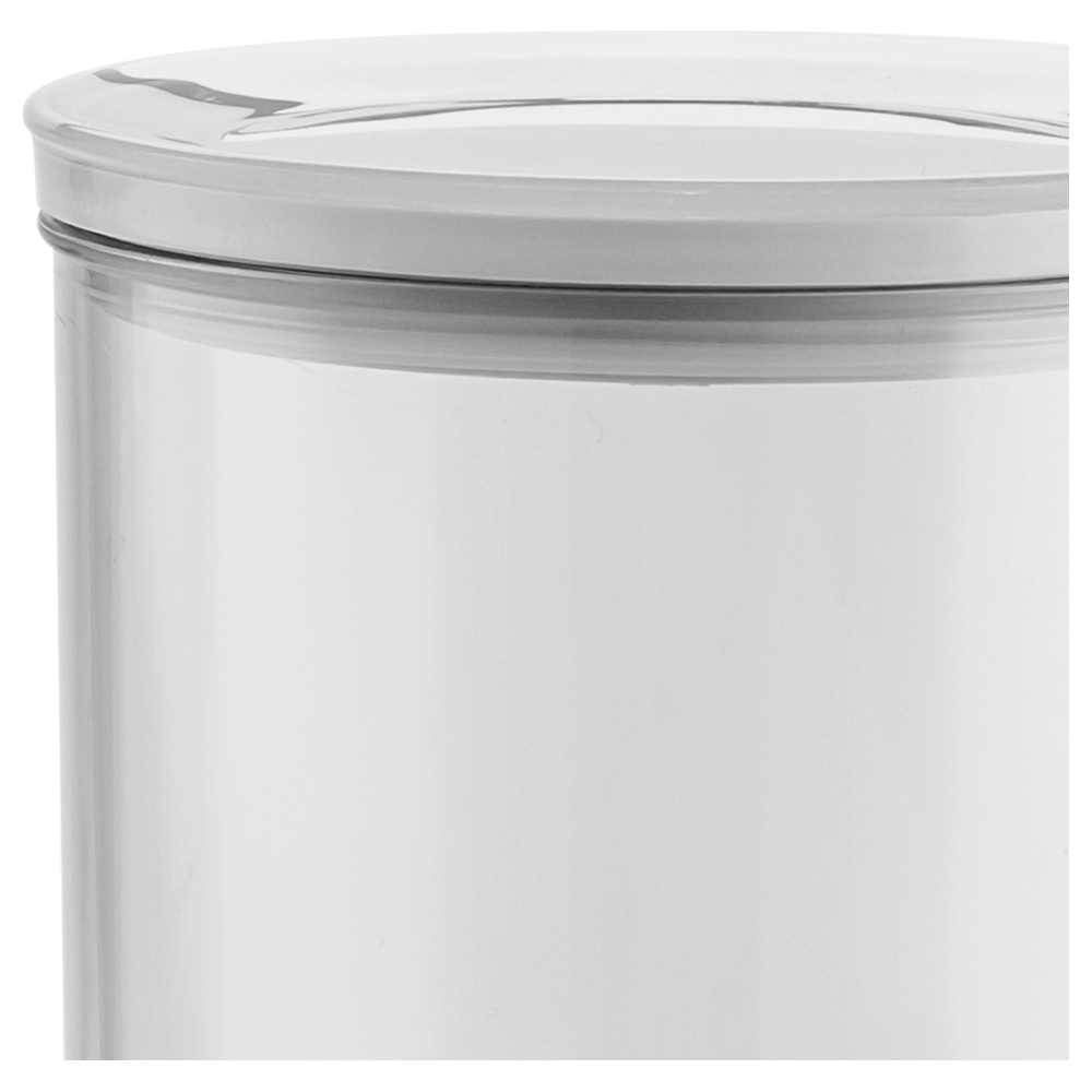Contenedor de alimentos Addo fabricado en plástico transparente, con una medida de 10 cm de diámetro.