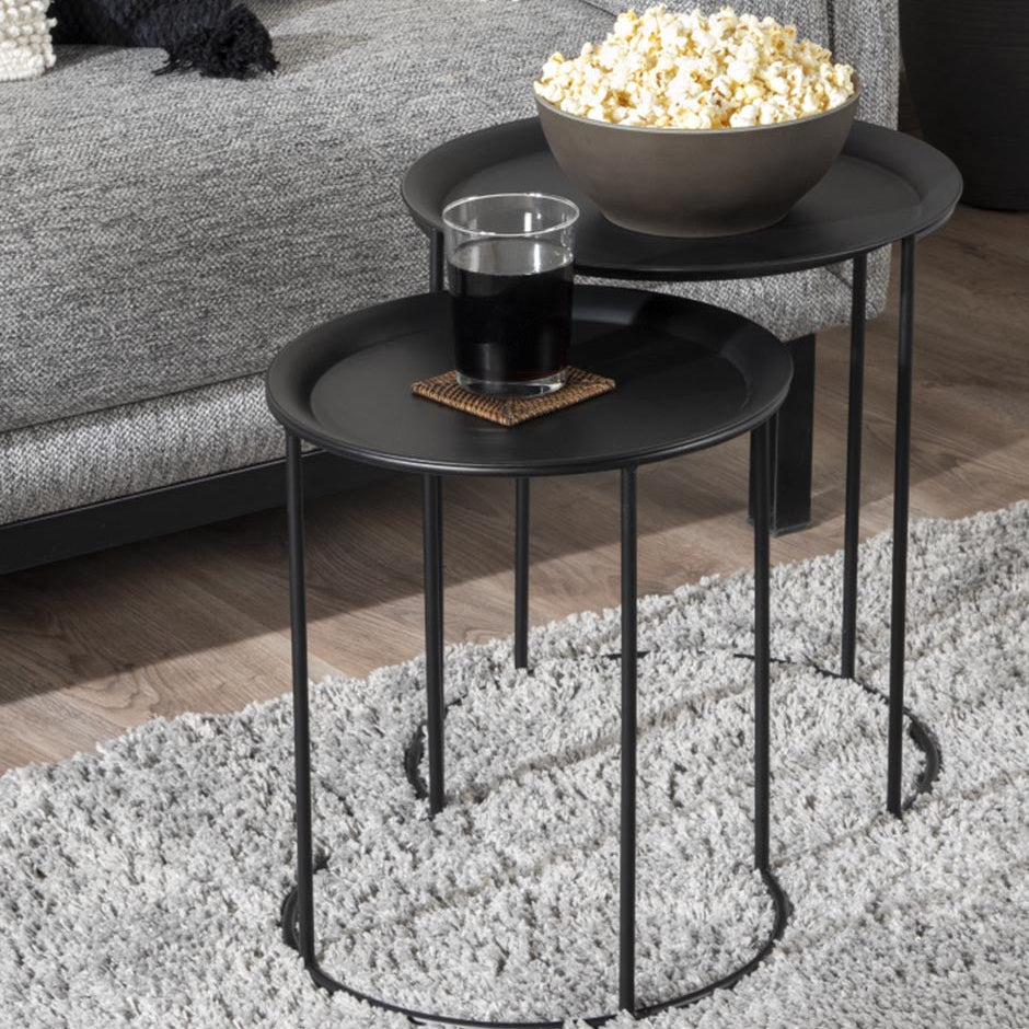 Juego de mesas de servicio Kenia con un acabado negro, fabricado en metal.