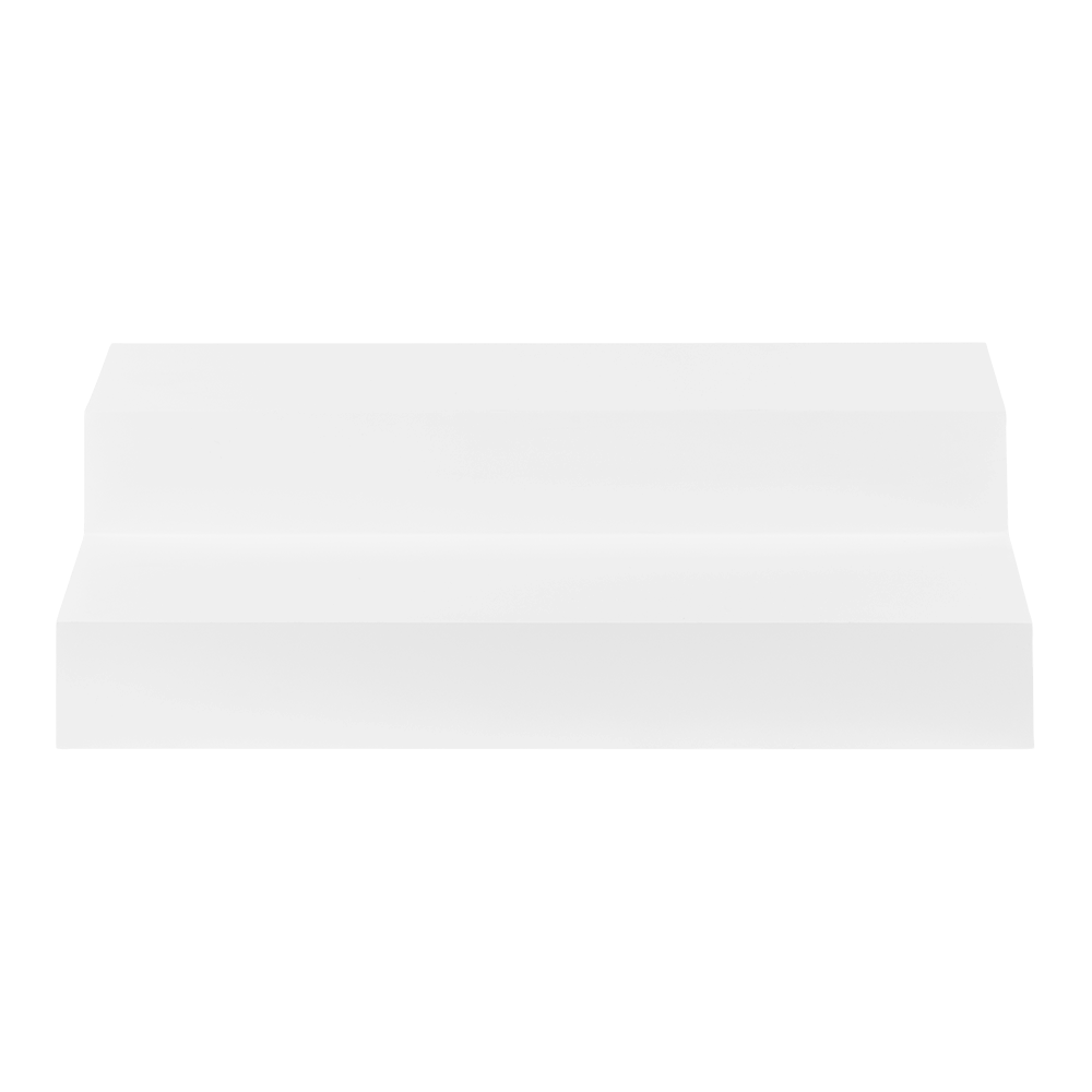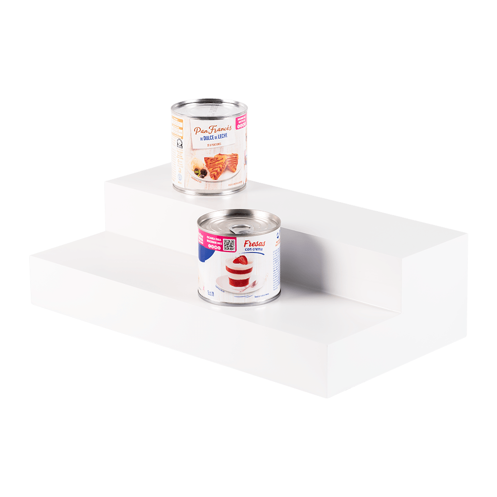 Organizador de recipientes en color blanco de 38 cm de largo x 18 cm de ancho x 9 cm de alto, fabricado en tablero.