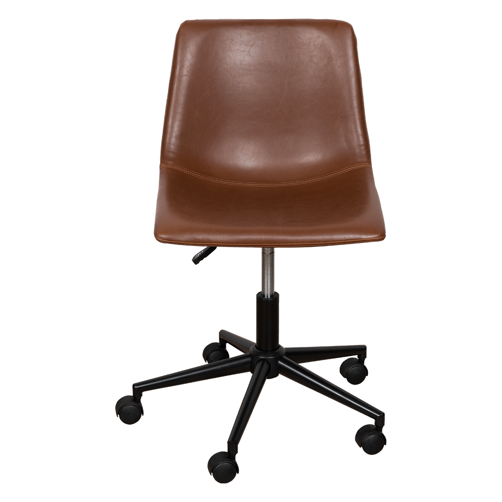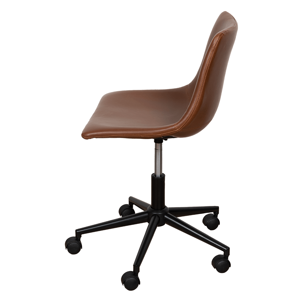 Silla ejecutiva Dalton en color chocolate de 46 cm de largo x 52 cm de ancho x 75~85 cm de alto, fabricado en poliuretano y metal.