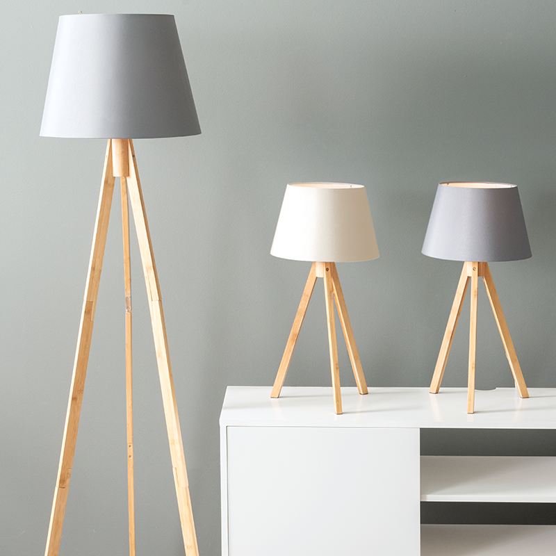 Pantalla Babin color natural, fabricado en bambú y metal.
