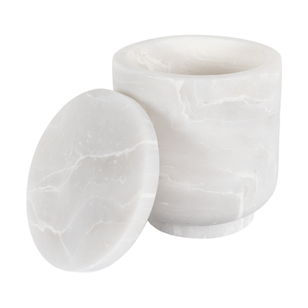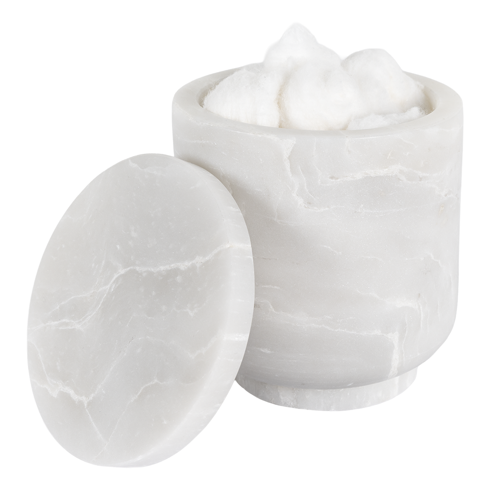 Algodonera Londra en color blanco de 10.2 cm de diámetro x 11.6 cm de alto, fabricado en Mármol.