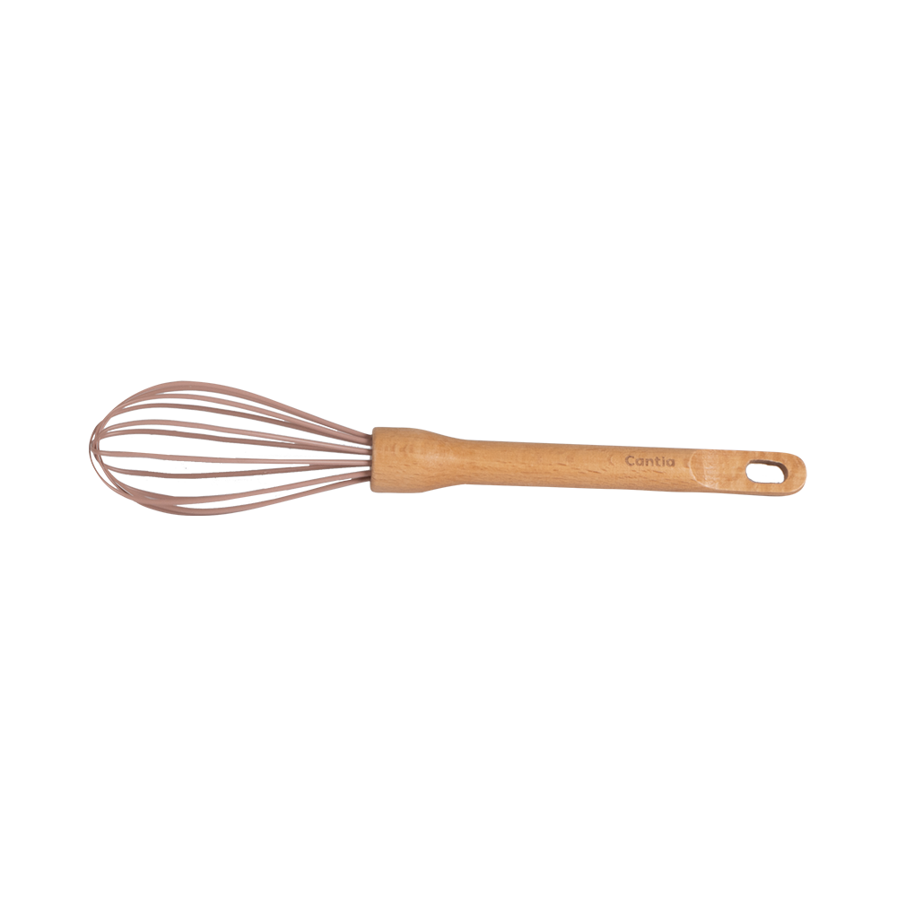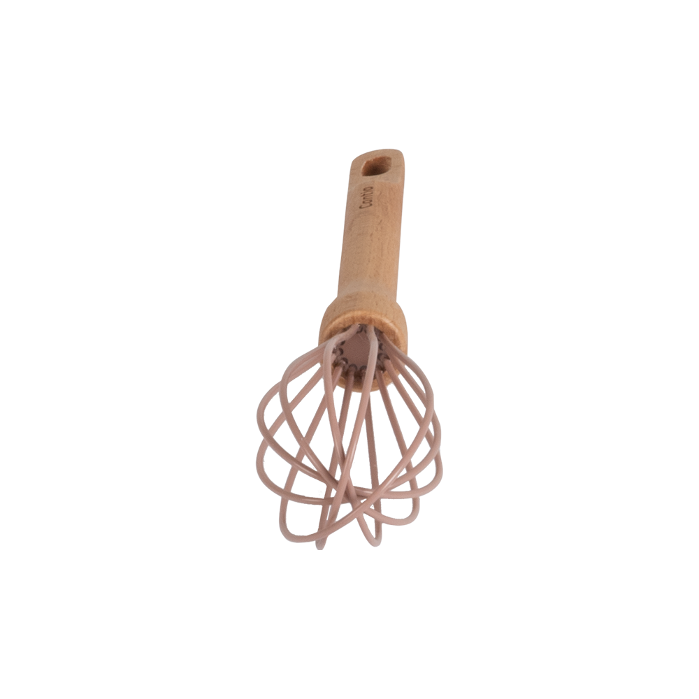 Batidor globo color rosa de 26.4 cm de largo x 5.5 cm de ancho x 5.5 cm de alto, fabricado en madera y silicón.