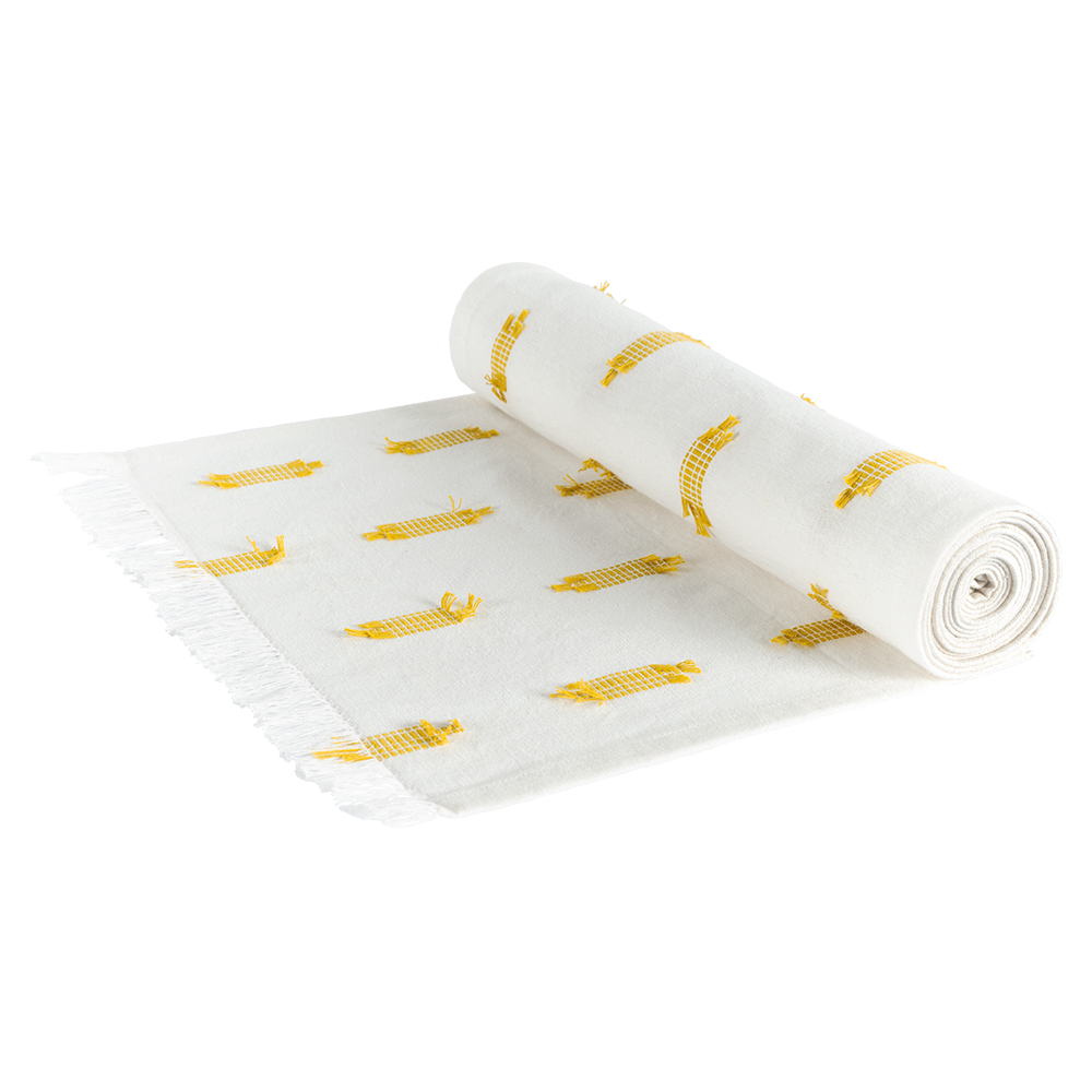 Camino De Mesa Xaancolor amarillo, fabricado en algodón.