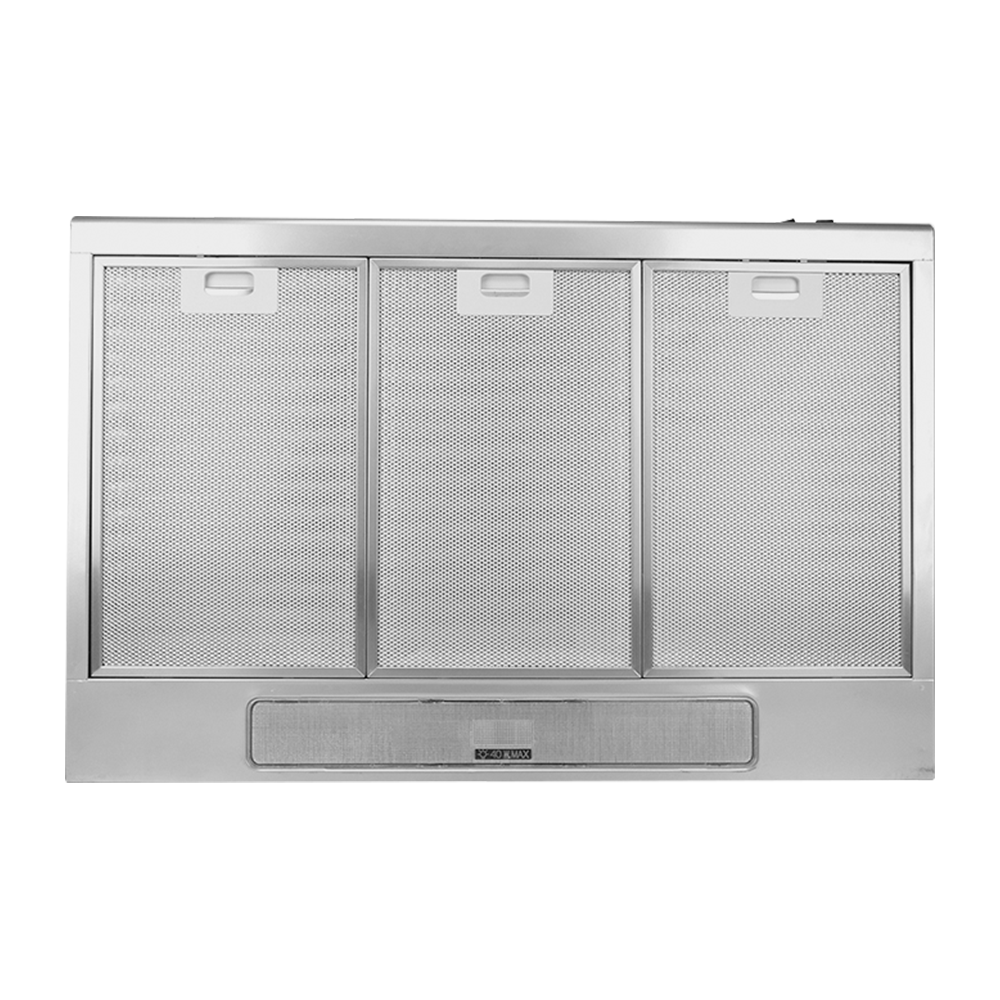 Campana empotable Titanium color plata de 50 cm de largo x 76 cm de ancho x 15 cm de alto, fabricado en metal y acero.