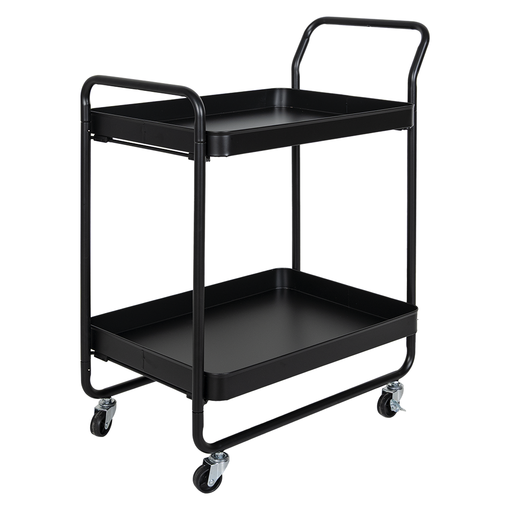 Carro de Servicio Toulaud en color negro de 63.5 cm de largo x 40.4 cm de ancho x 83.4 cm de alto, fabricado en metal.