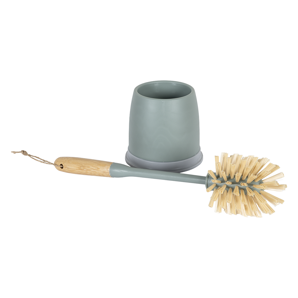 Cepillo para baño Ardara en color gris de 37 cm de largo x 12 cm de ancho x 12 cm de alto, fabricado en plástico y bambú.