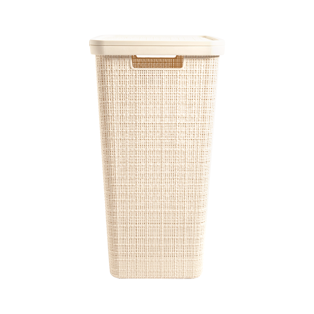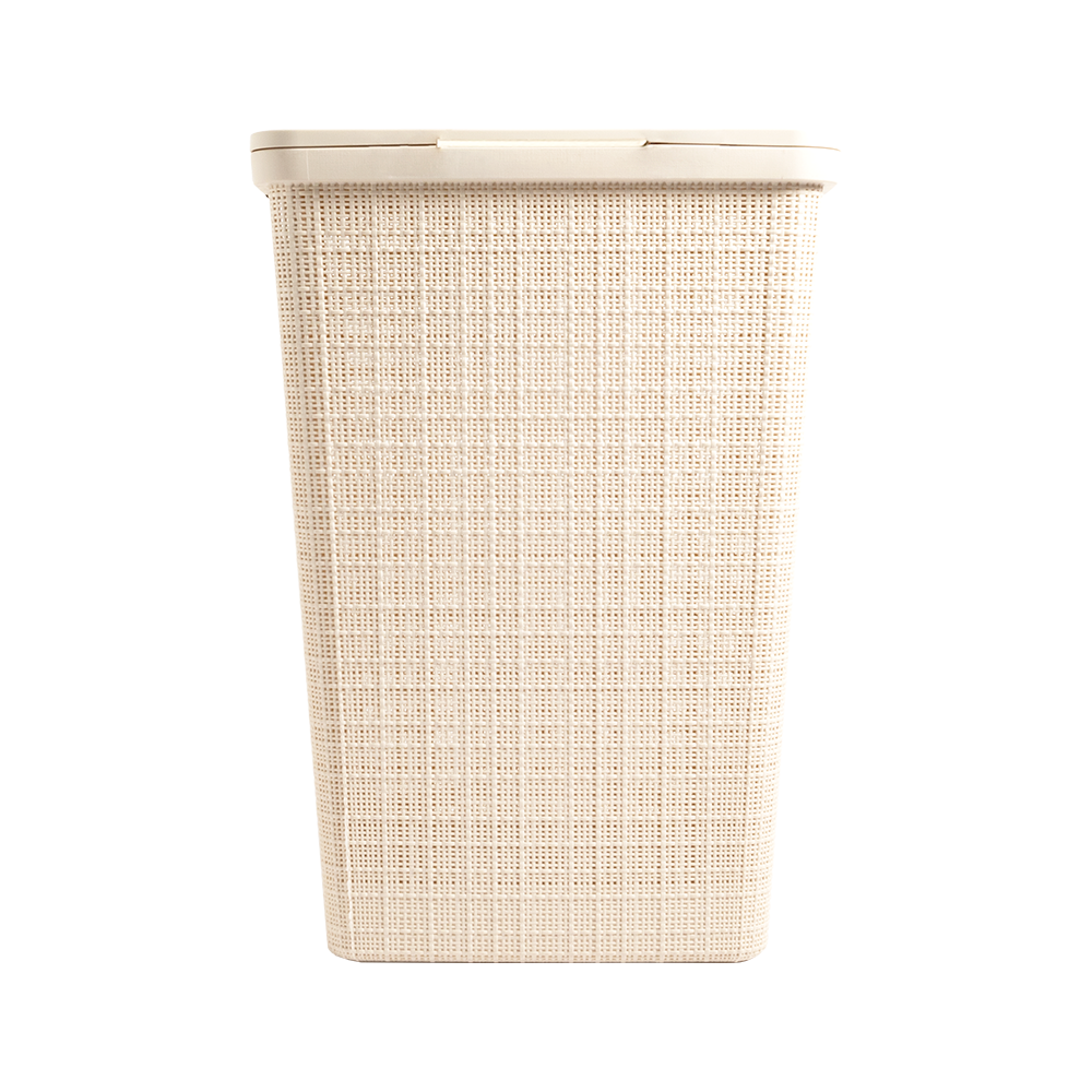 Cesto de lavandería de 58 litros color beige de 60 cm de largo x 41 cm de ancho x 31 cm de alto, fabricado en plástico.