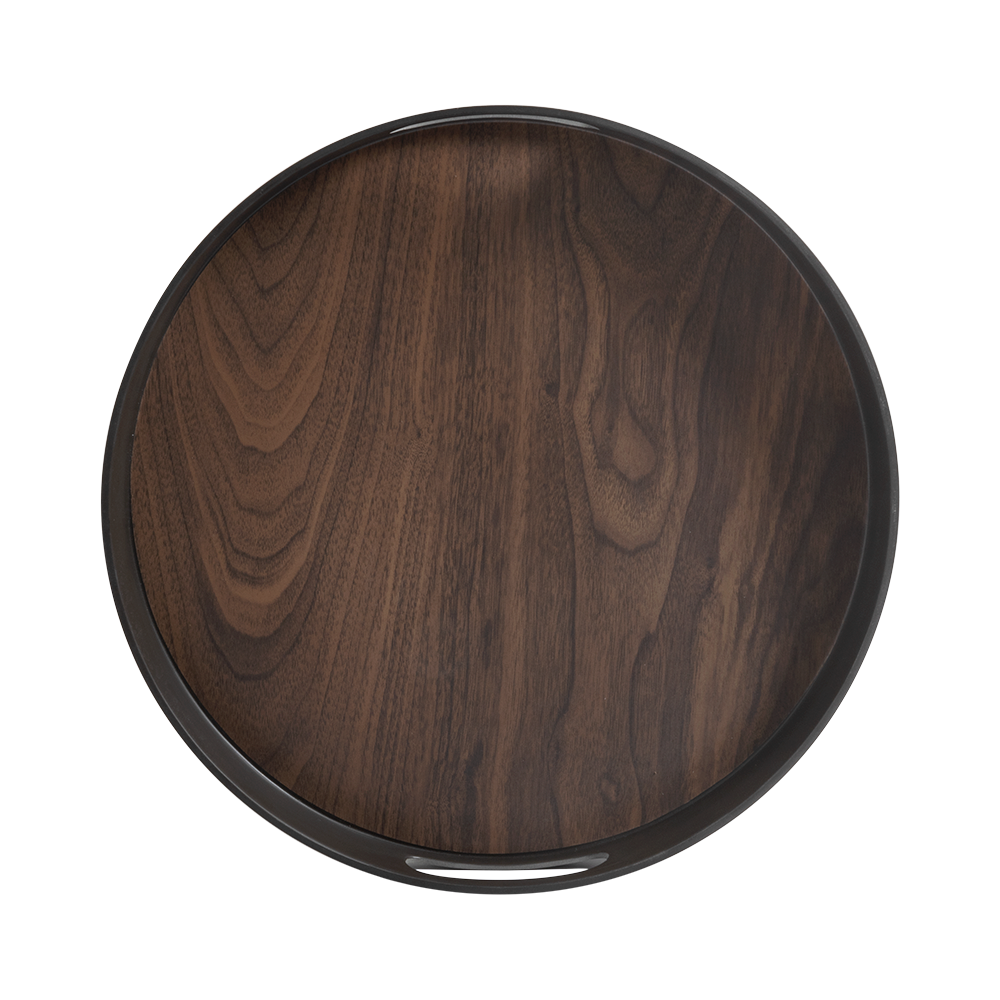 Charola Sasa color nogal con gris de 38 cm de largo x 38 cm de ancho x 5 cm de alto, fabricado en bambú.