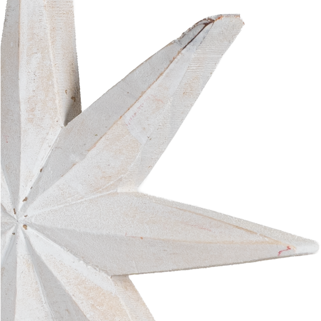 Colgante de Estrella color blanco, fabricado en madera. En una medida de 15 cm de largo x 15 cm de ancho.