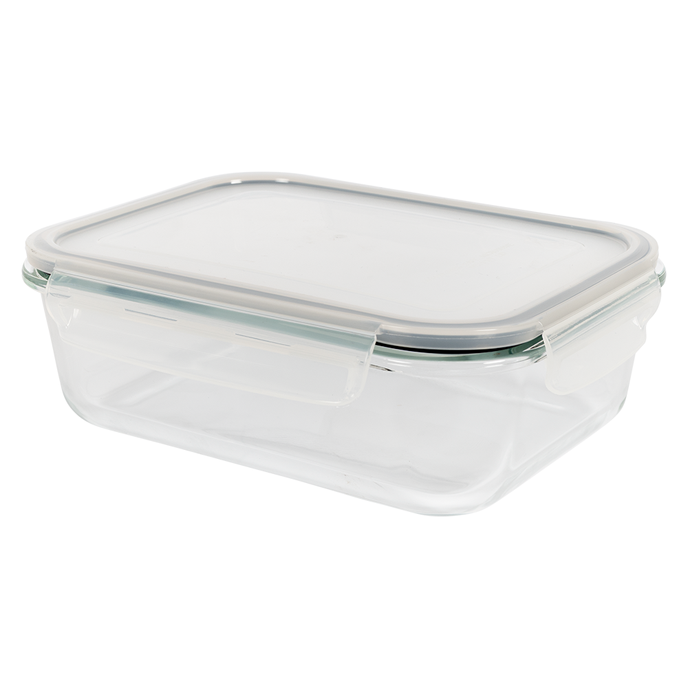 Contenedor De Alimentos Vidrio Vogar color transparente y negro, fabricado en vidrio.