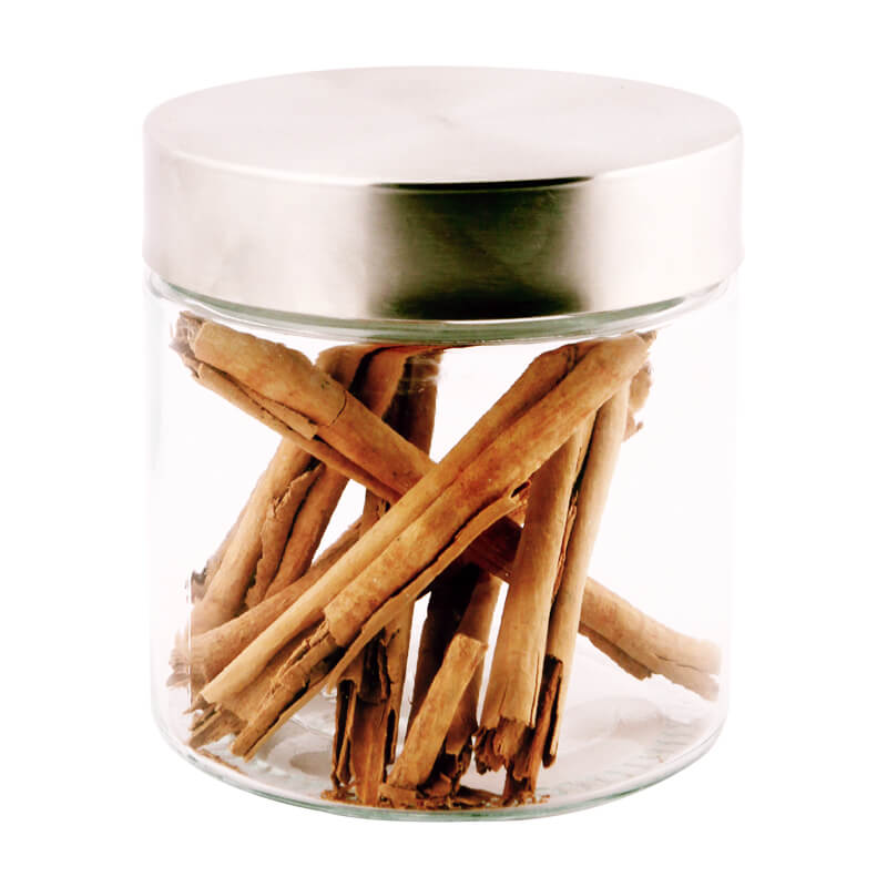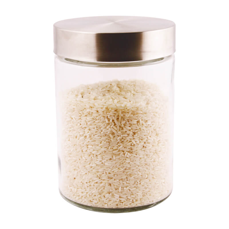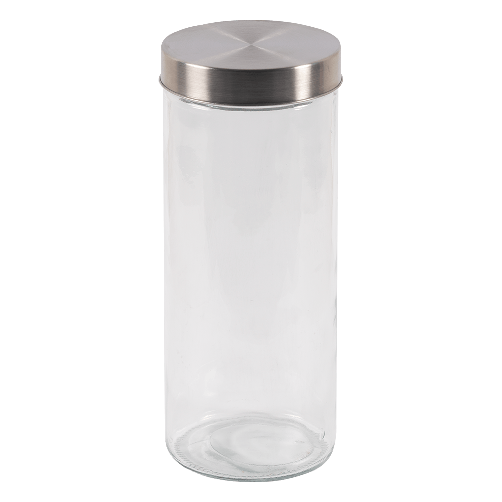 Contenedor de alimentosfabricado en vidrio y tapa de metal con un diseño transparente, disponible en diferentes medidas: