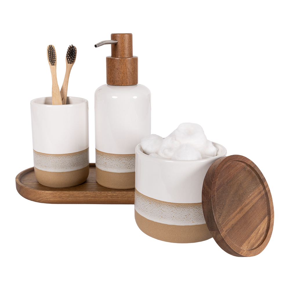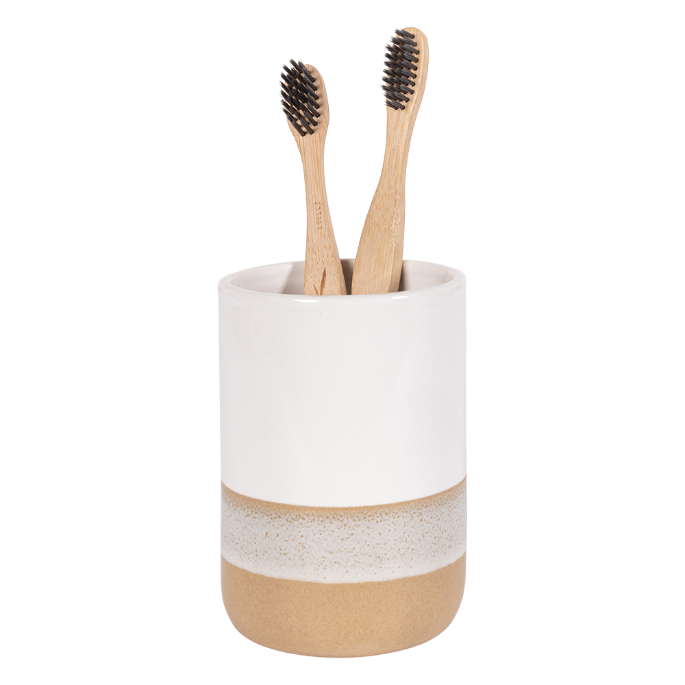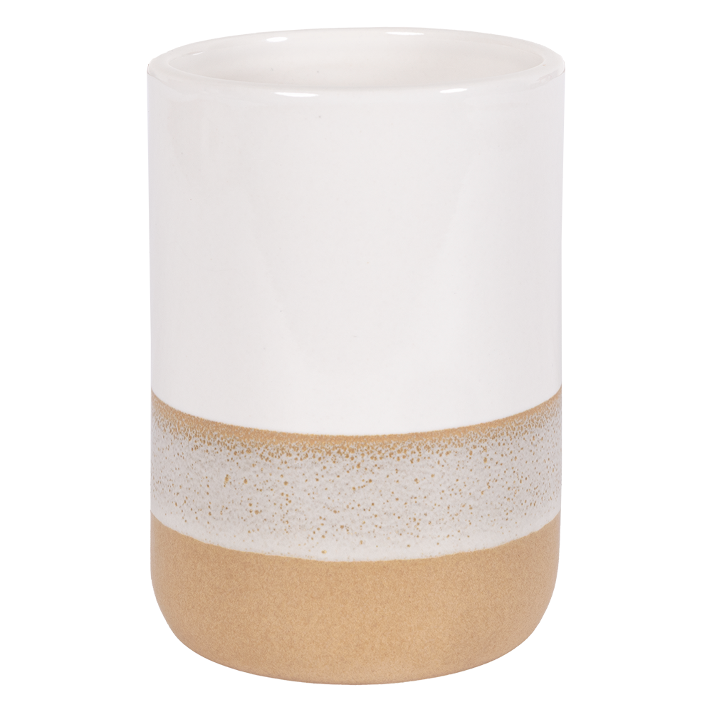 Contenedor Irma en color blanco de 7.4 cm de largo x 7.4 cm de ancho x 11 cm de alto, fabricado en Cerámica.