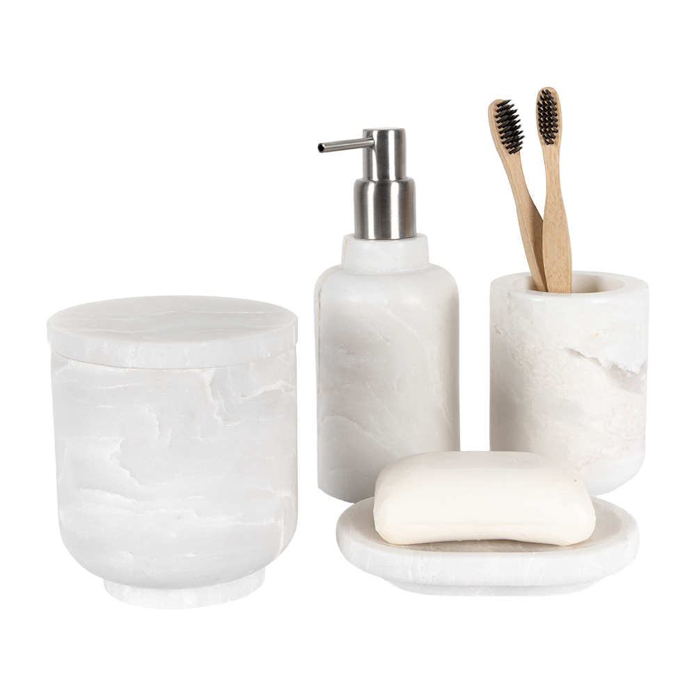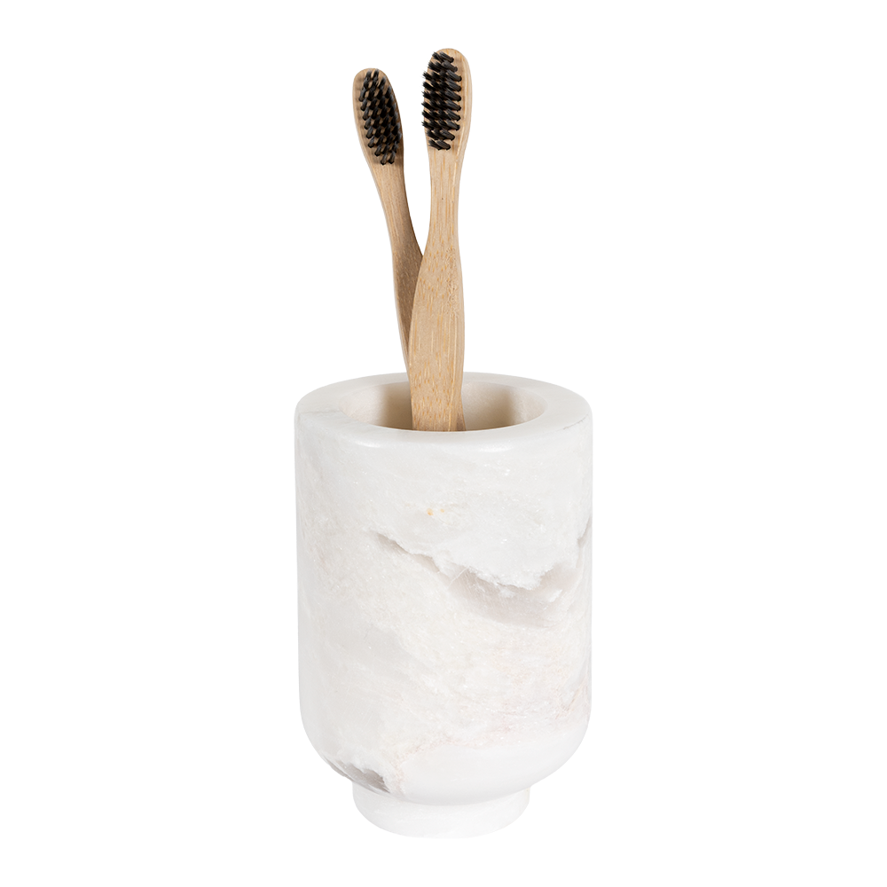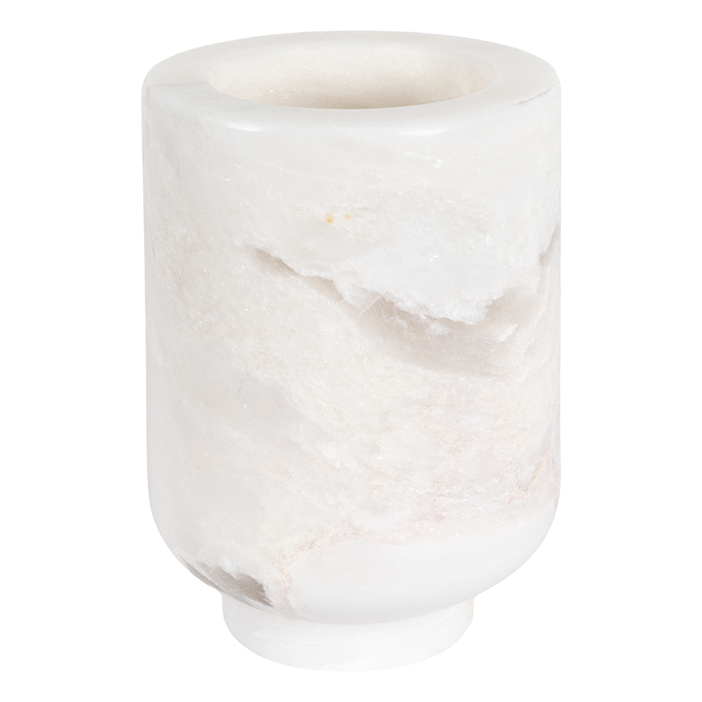 Contenedor Londra en color blanco de 7.6 cm de largo x 7.6 cm de ancho x 11.5 cm de alto, fabricado en Mármol.
