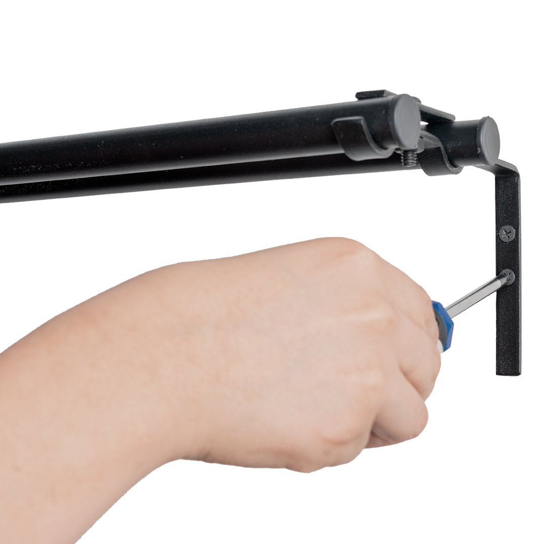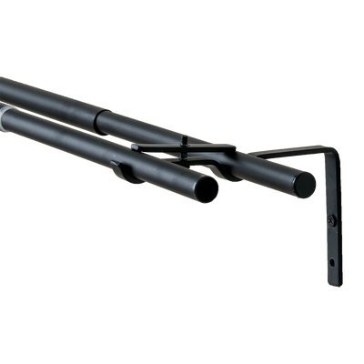 Cortinero Doble Color Negro, ajustable de 100 cm a 180 cm de largo, fabricado en acero. Soportes de 17 cm de largo x 10 cm de alto.