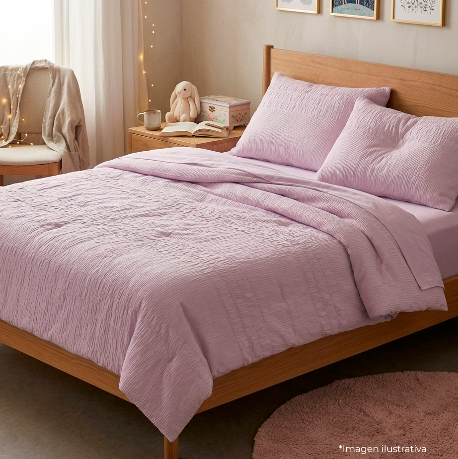 Cubrecama Polok en color rosa, fabricado en poliéster.