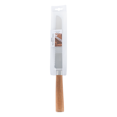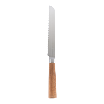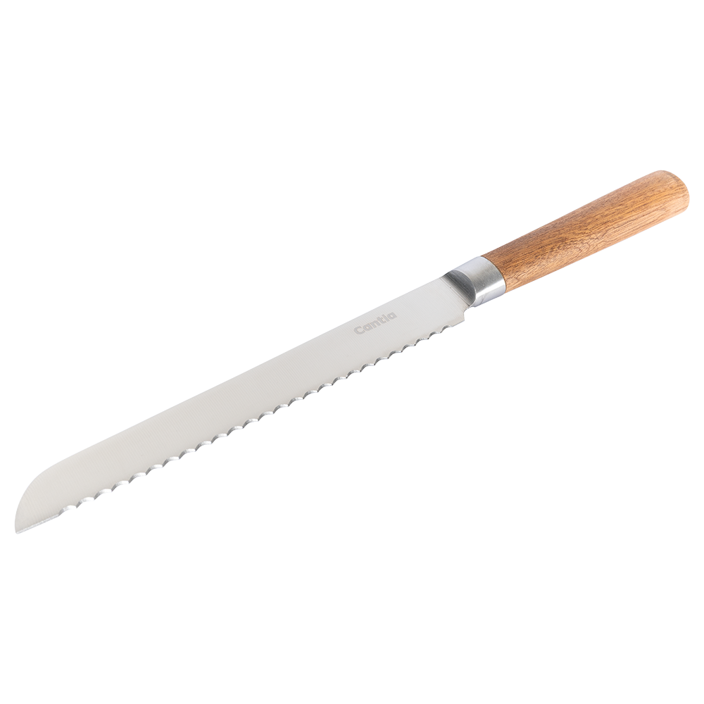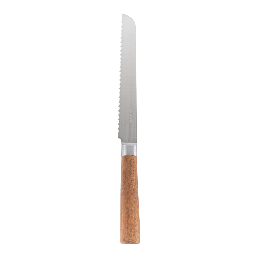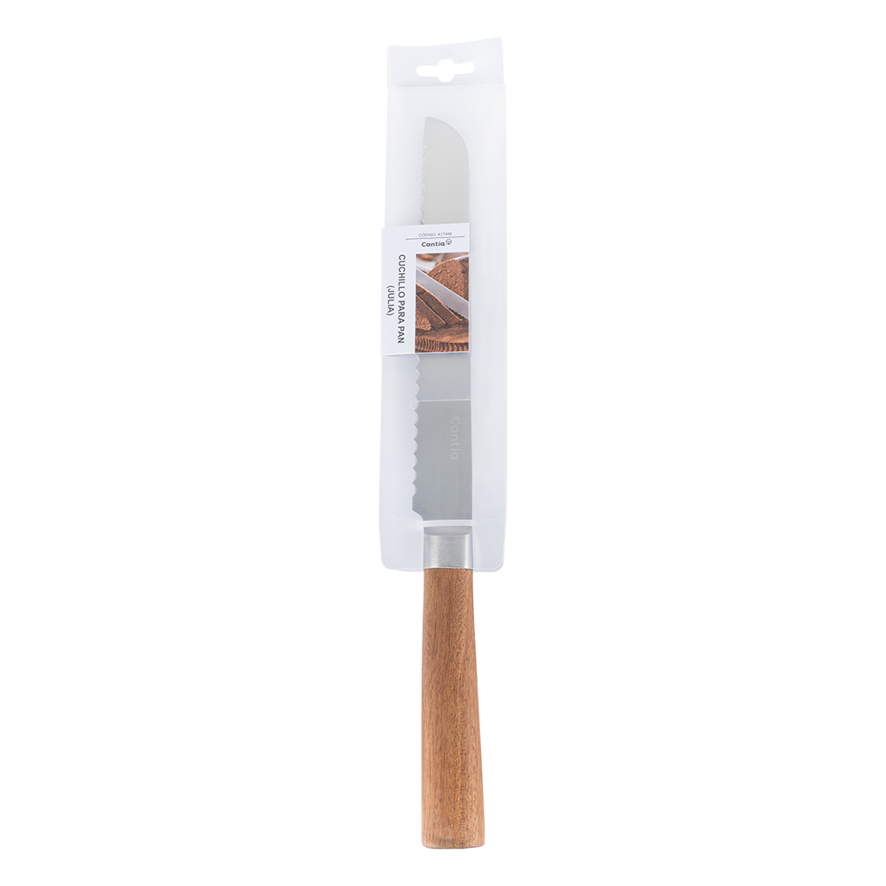 Cuchillo Para Pan Julia color plata, fabricado en acero inoxidable.