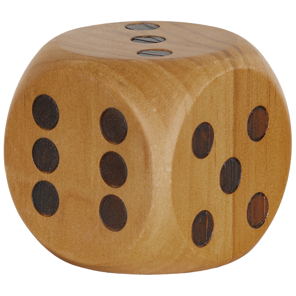 Decorativo Dado en color café de 9 cm de largo x 9 cm de ancho x 9 cm de alto, fabricado en madera.