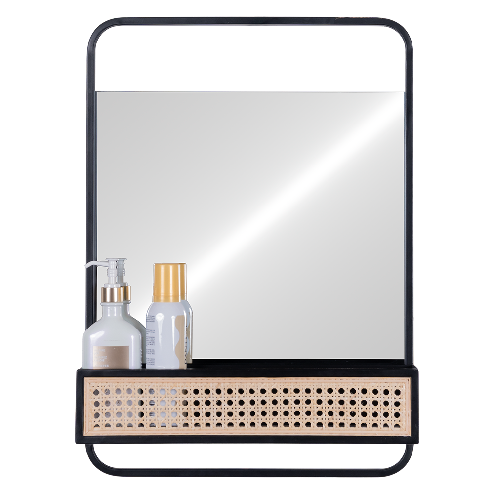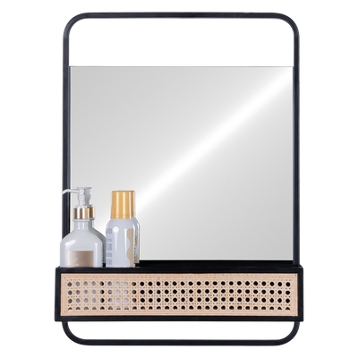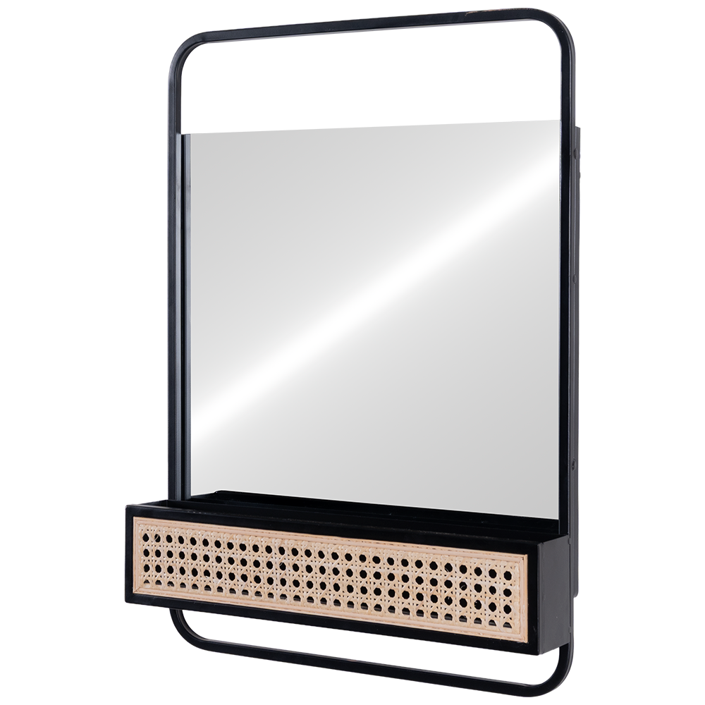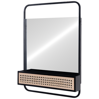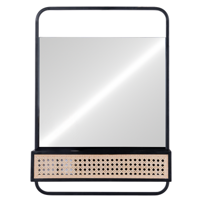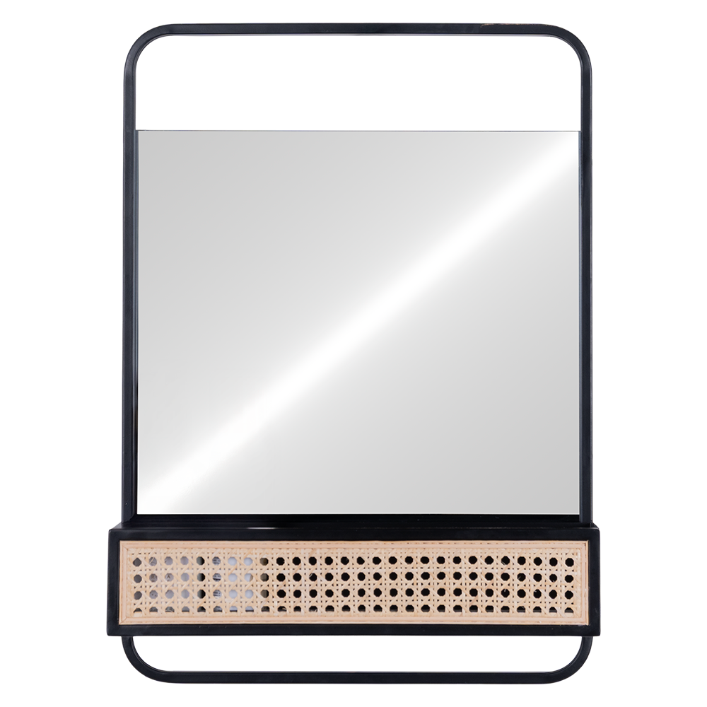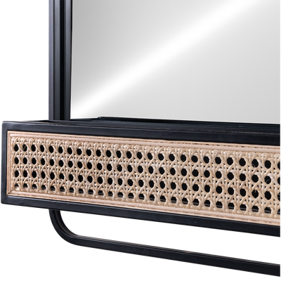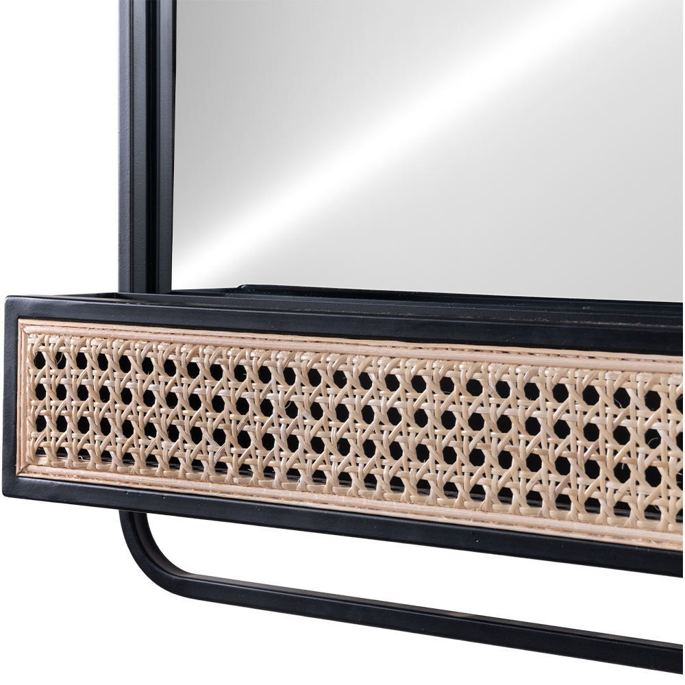 Espejo Lublin acabado negro, fabricado en espejo, hierro y ratan.