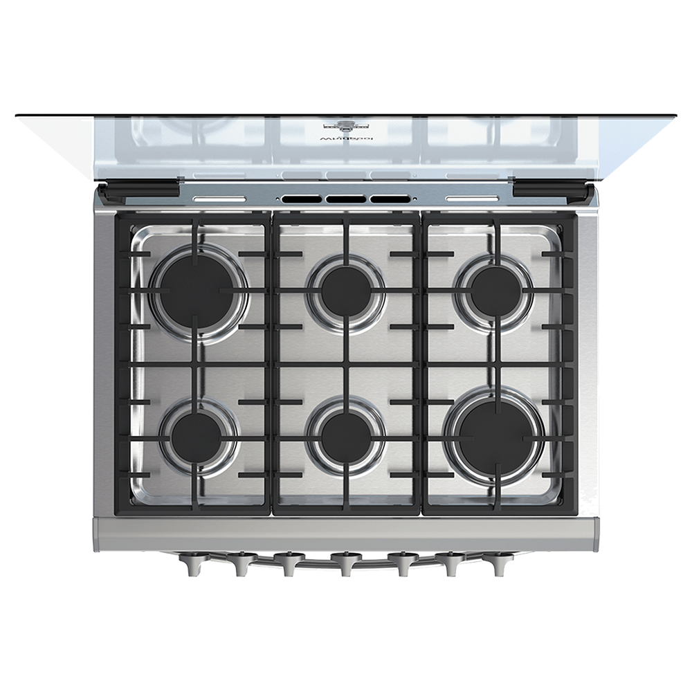 Estufa xpert flamma empotrable 30" con capelo de cristal templado, cubierta de acero inoxidable y panel front control. Su quemador xpert flamma súper distribuye el calor desde el centro para brindarte una cocción perfecta y uniforme. Además, cuenta con una perilla xpert cook y 3 parrillas de hierro fundido.
