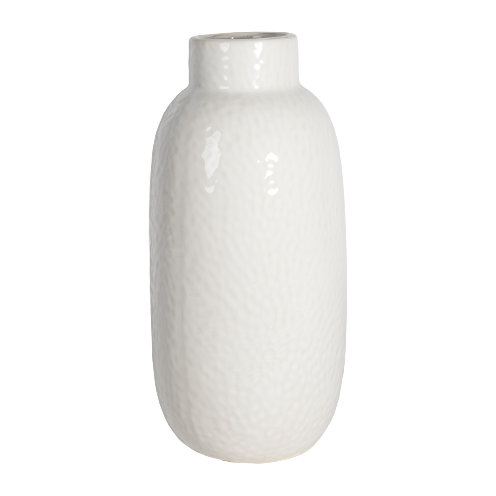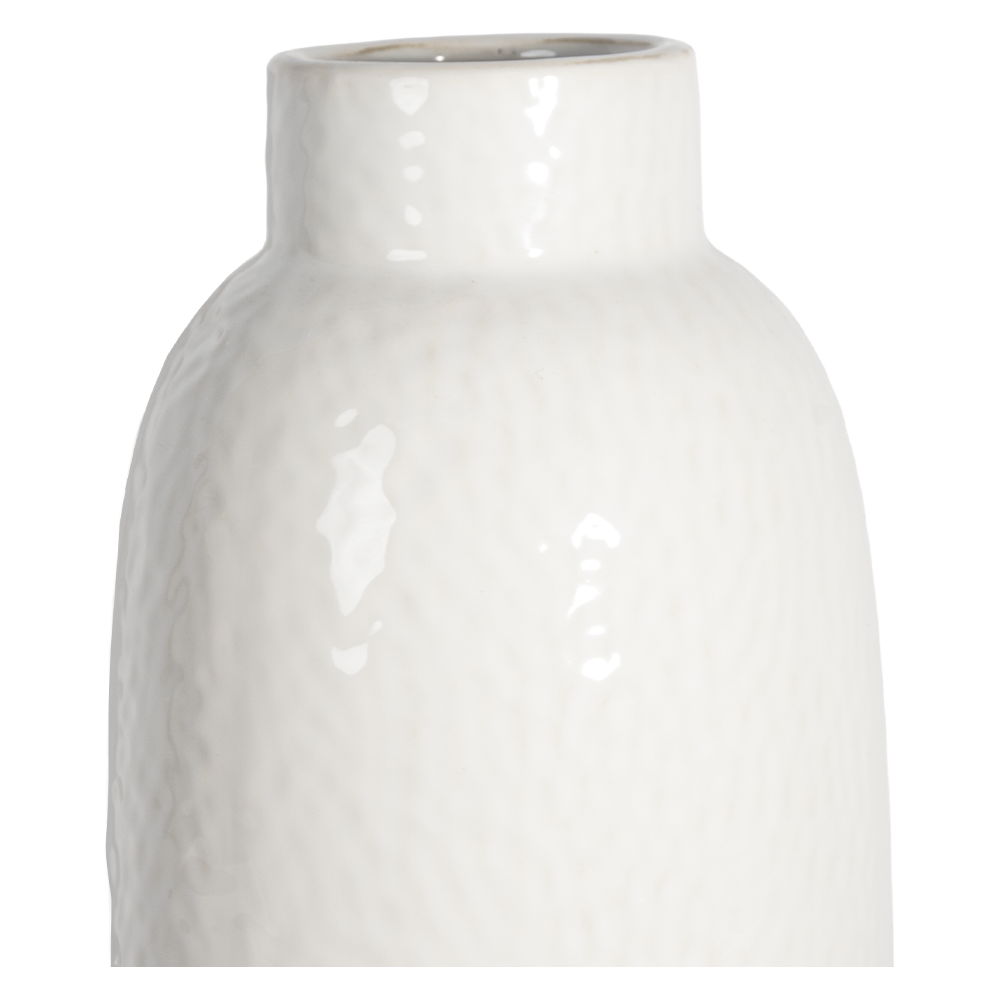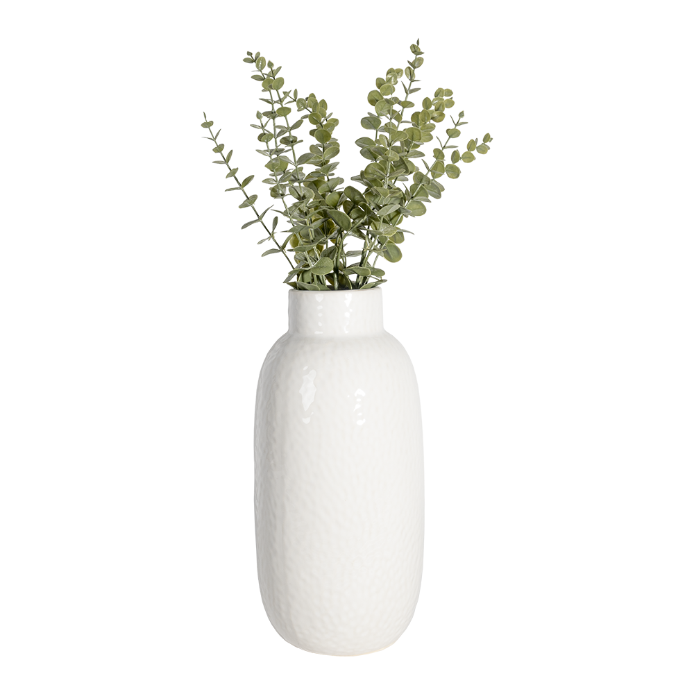 Florero Ali de color blanco de 18 cm de largo x 18 cm de ancho x 37 cm de alto, fabricado en cerámica.
