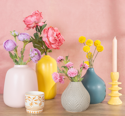 Florero Sarmientocolor rosa, fabricado en cerámica.