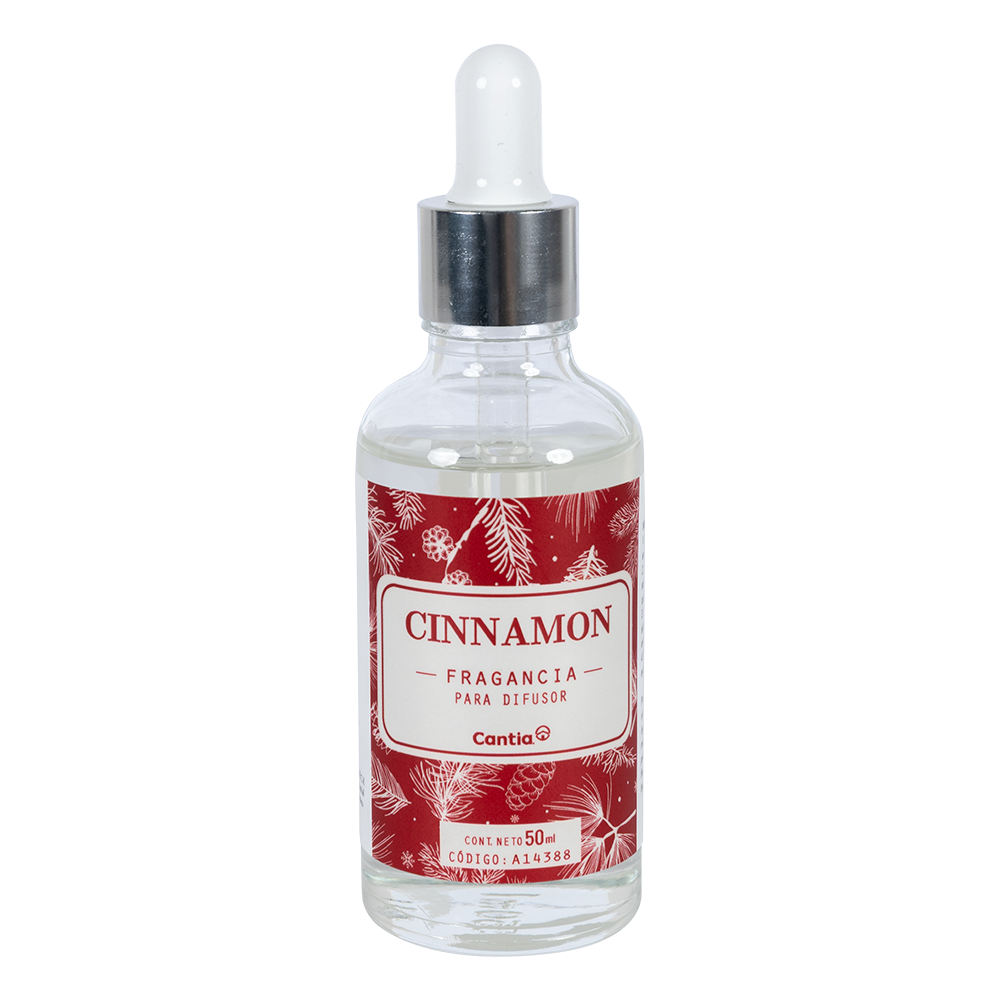 Fragancia aromática cinnamon de 50 ml fabricado en vidrio de 10.5 cm de largo x 3.5 cm de ancho,con un aroma a vainilla, naranja, manzana y canela.