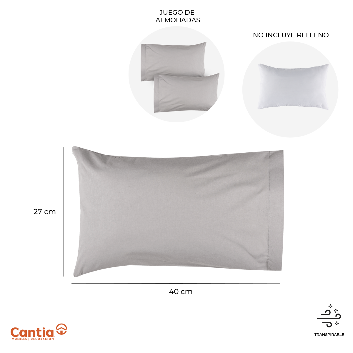 Funda Almohada Bebé en color gris de 40 cm de largo x 27 cm de ancho, fabricado 100% en algodón.