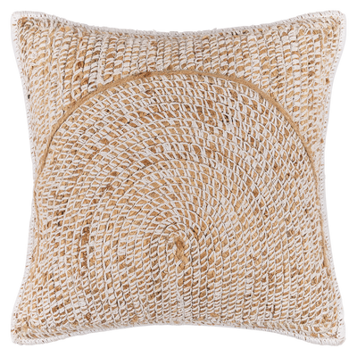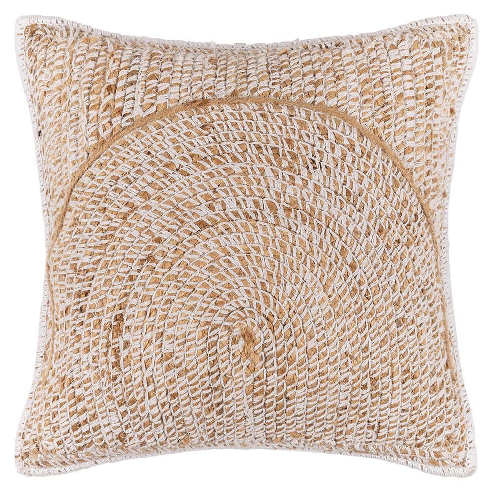Funda Cojín Arcos color beige, fabricado en 30% algodón y 70% yute.