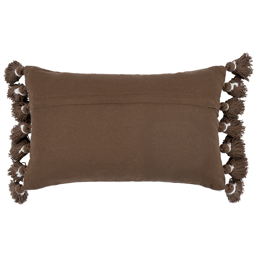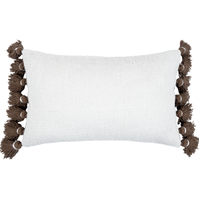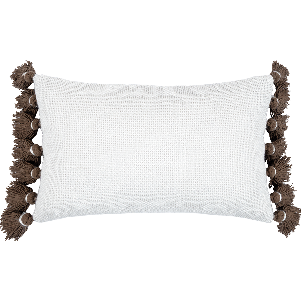 Funda De Cojín Rectangular Maple Pompones color perla, fabricado en yute.