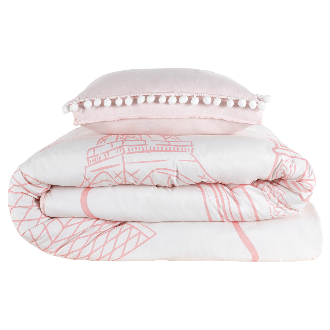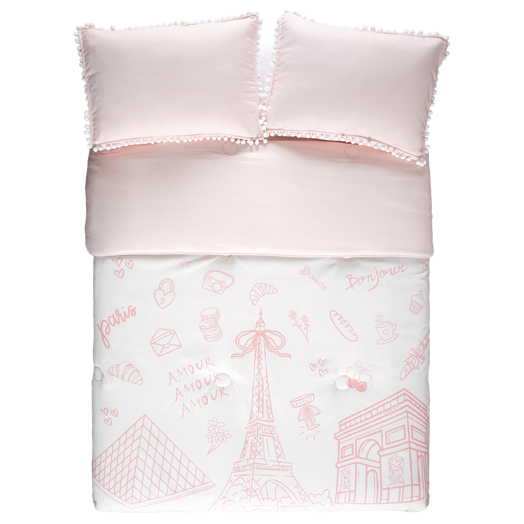 Juego de edredón individual Paris en color rosa de 175 cm de largo x 235 cm de ancho, fabricado en 100% poliéster.