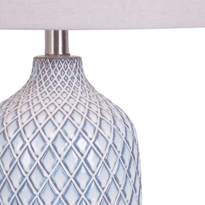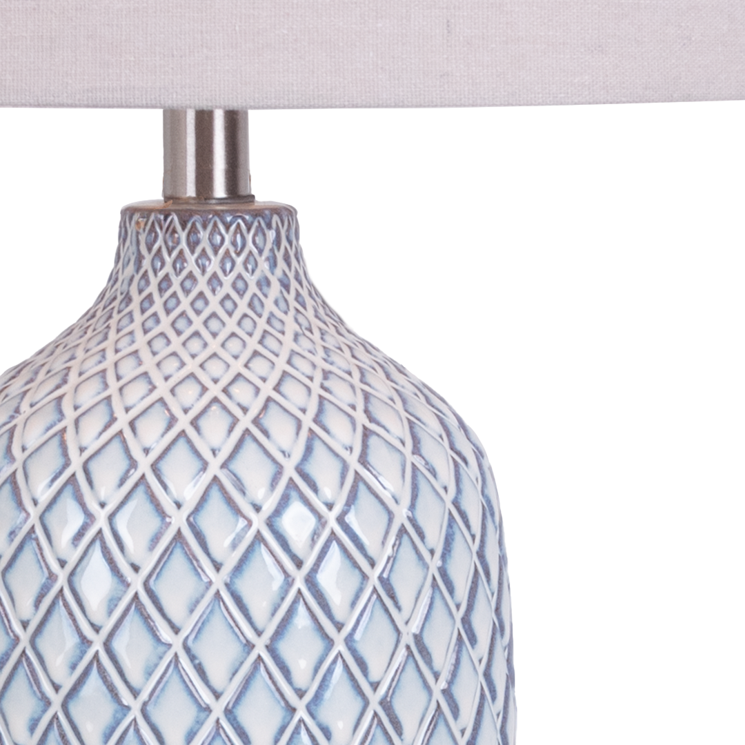 Luminario De Mesa Ronda color beige, fabricado en cerámica y metal.
