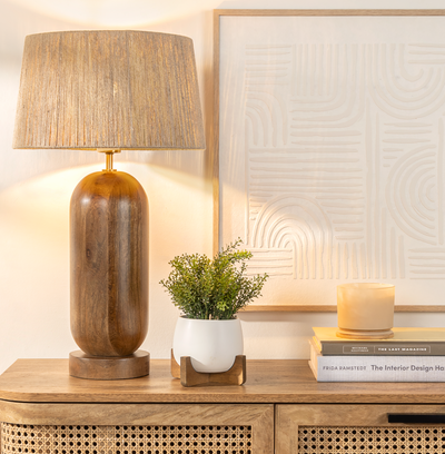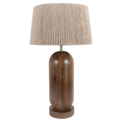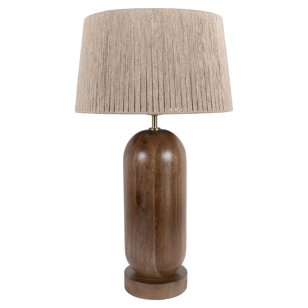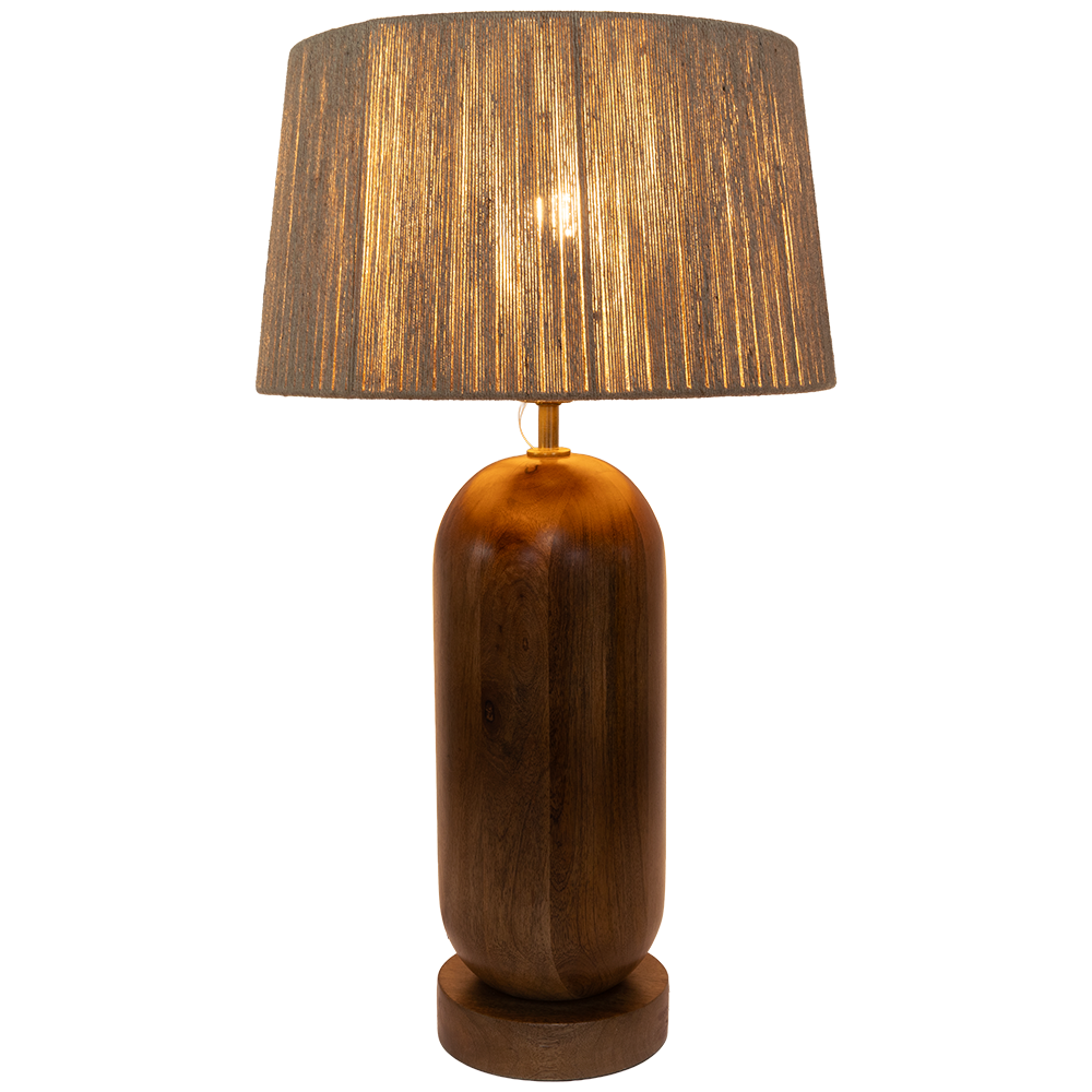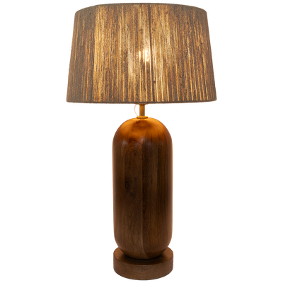 Luminario De Mesa Sarah color café, fabricado en madera de mango.