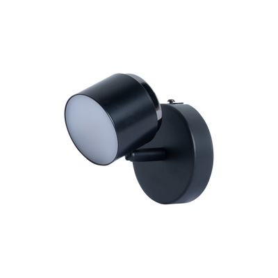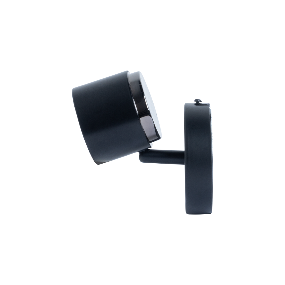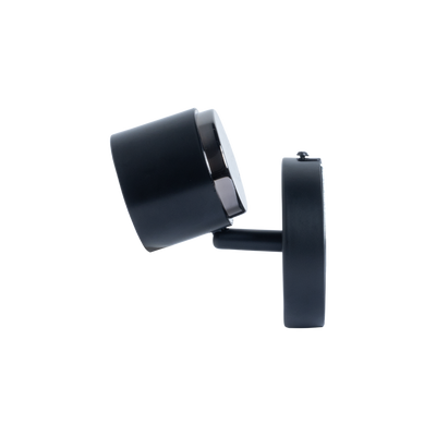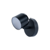 Luminario de pared LED color negro de 15.5 cm de largo x 10 cm de ancho x 9.5 cm de alto, fabricado en aluminio.