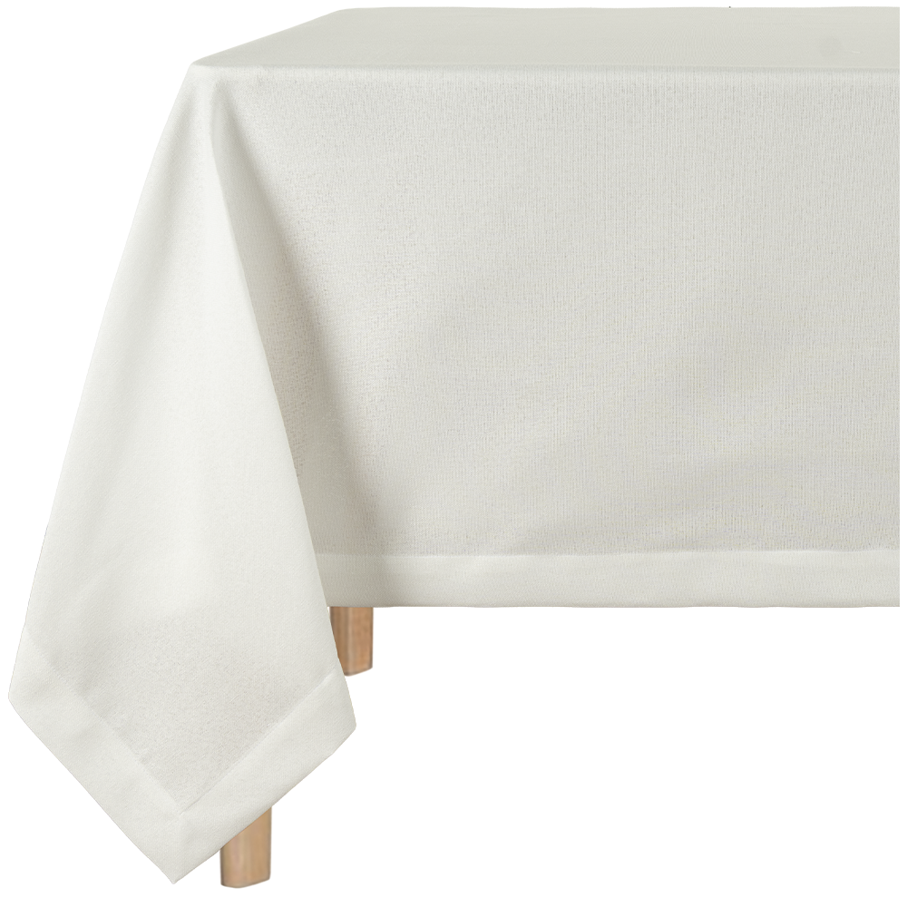 Mantel Rectangular en color blanco de 248 cm de largo x 160 cm de ancho, fabricado en 100% poliéster.