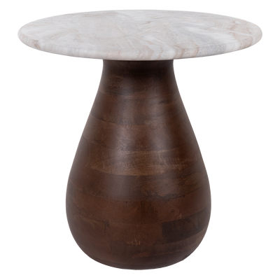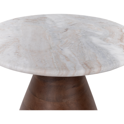 Mesa Vallinfreda en acabado nogal, fabricado en mármol y madera.