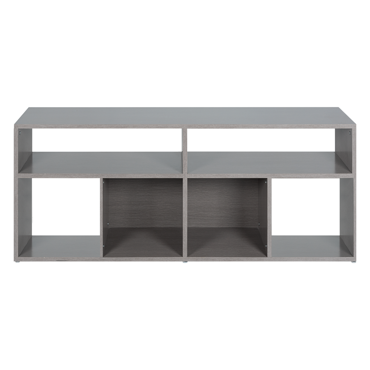 Mueble de TV Kik fabricado en tablero, capacidad total de hasta 59 kg distribuido en sus 6 espacios, cubierta ideal para televisores de hasta un peso de 25 kg.