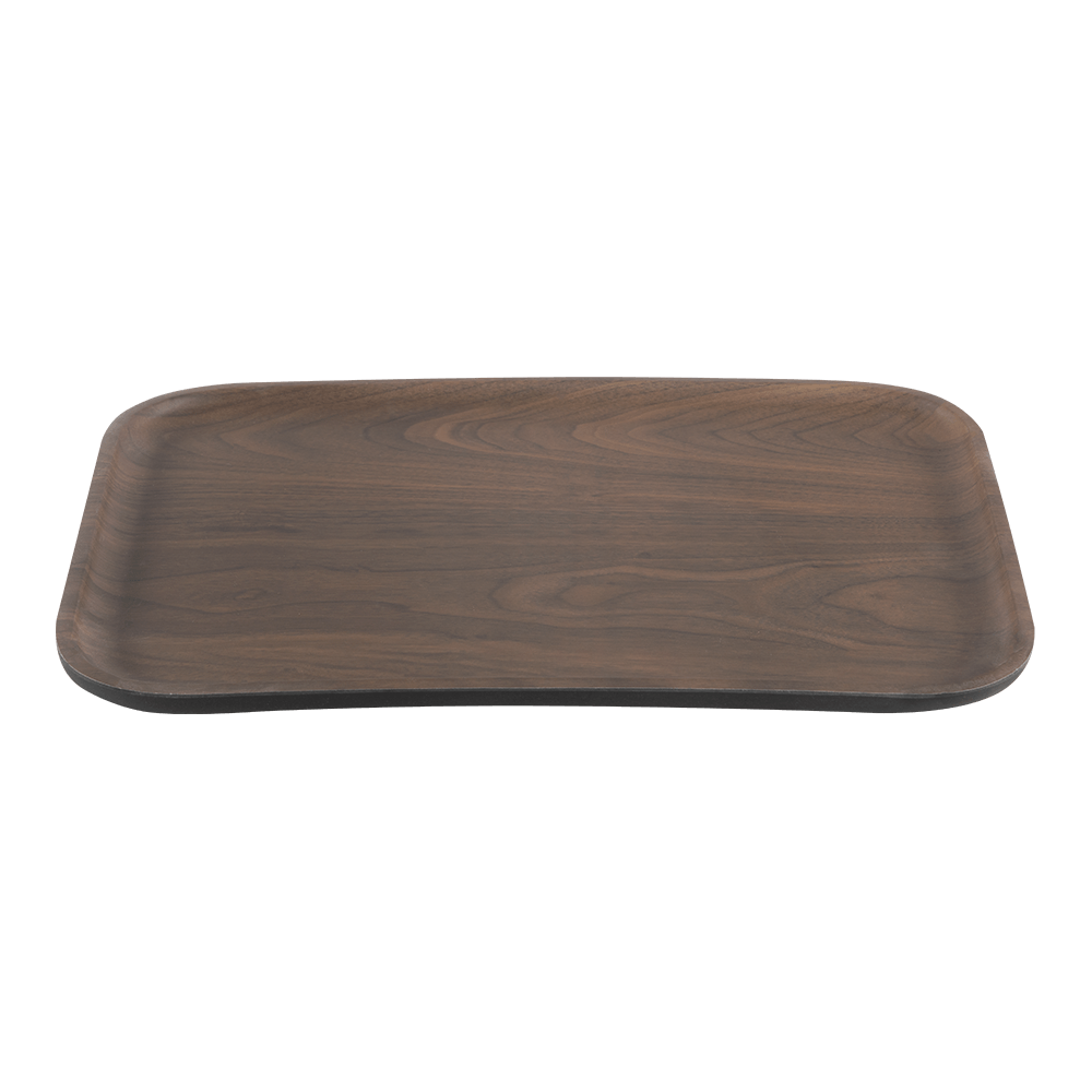 Plato rectangular Sasa disponible en color nogal de 36 cm de largo x 25 cm de ancho x 1.5 cm de alto, fabricado en bambú.