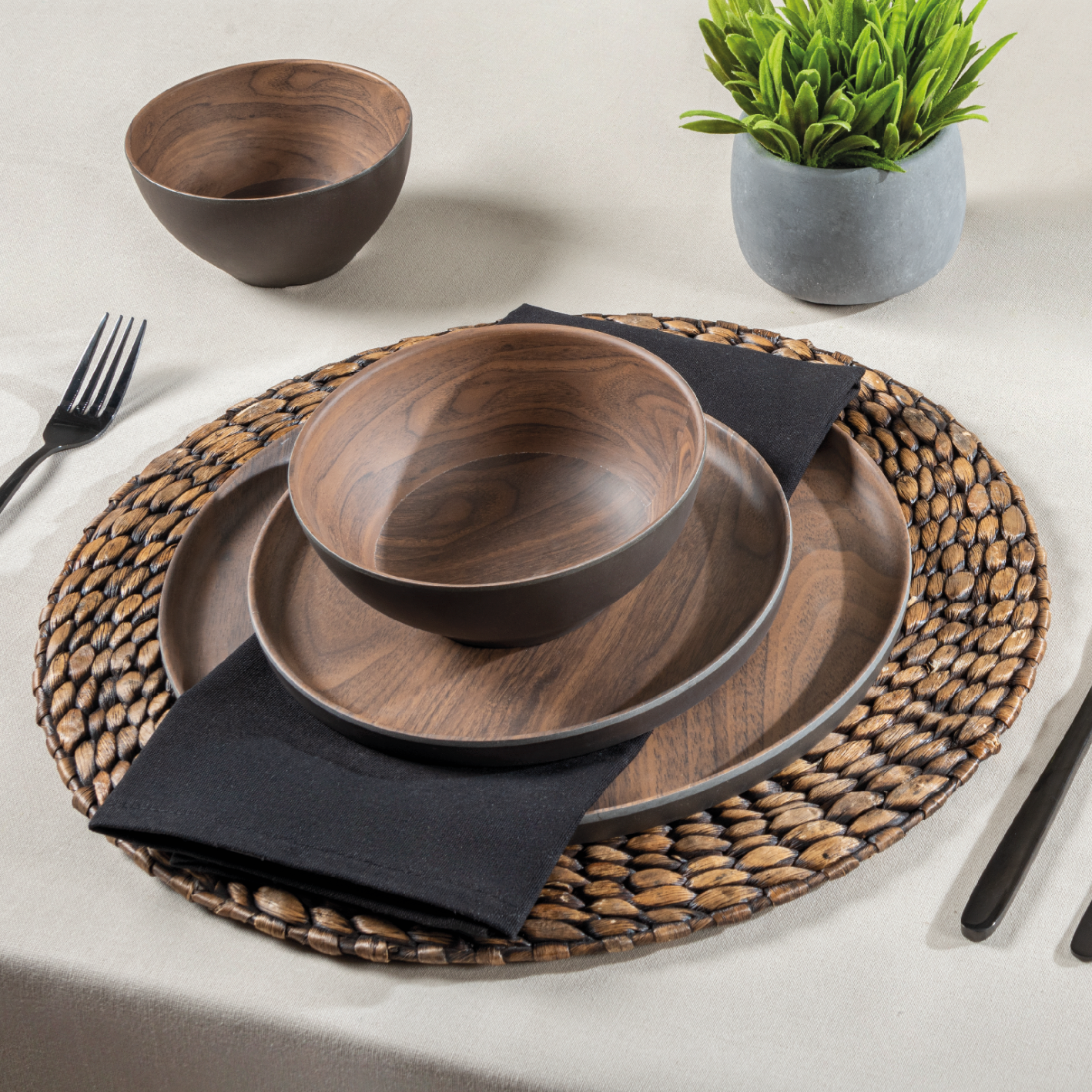 Plato trinche Sasa en color café de 28 cm de largo x 28 cm de ancho x 2 cm de alto, fabricado en fibra de bambú.