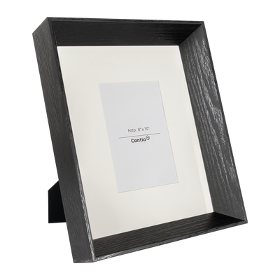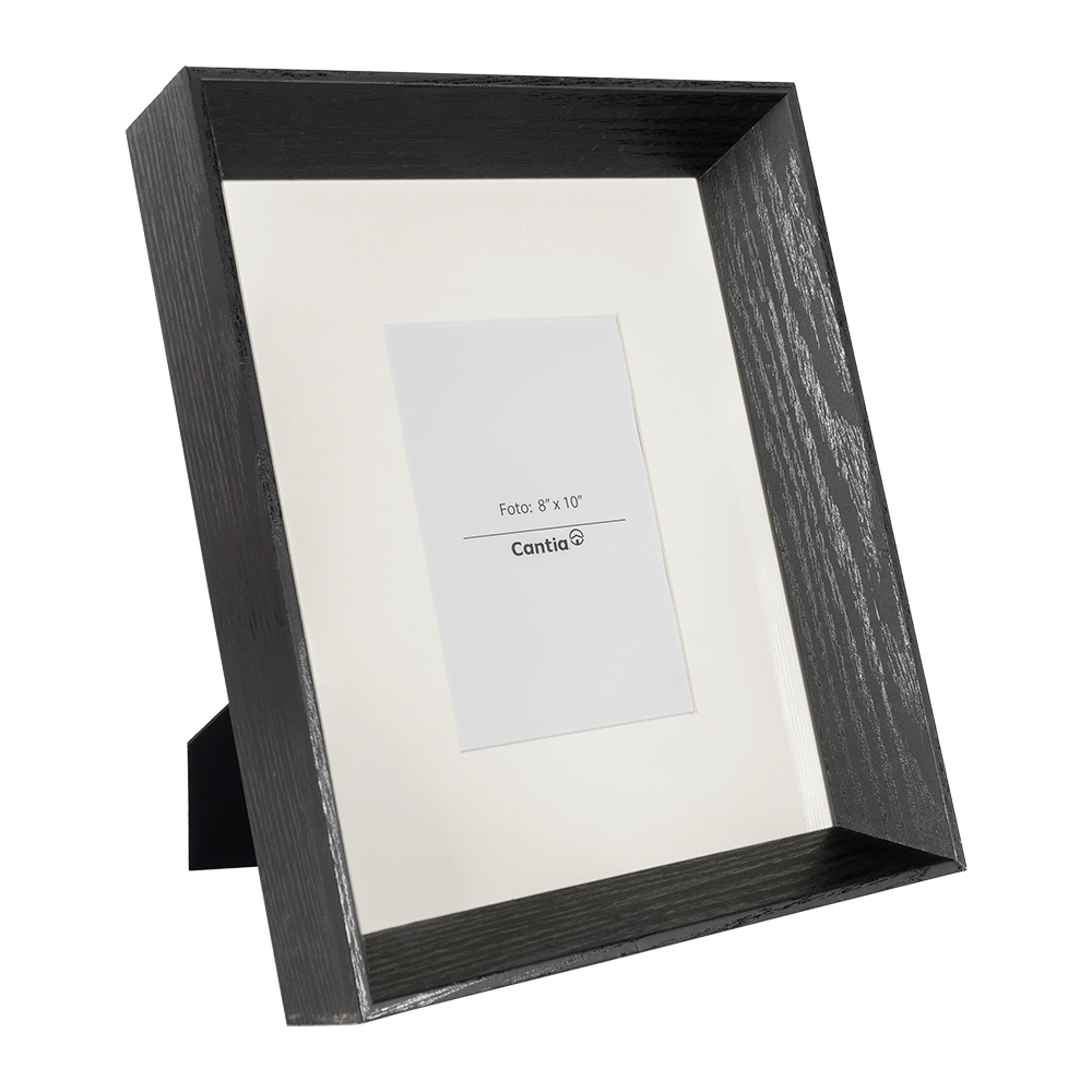 Portaretratos Takcolor negro, fabricado en MDF, papel y vidrio.